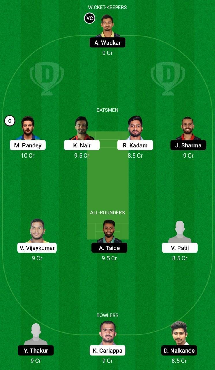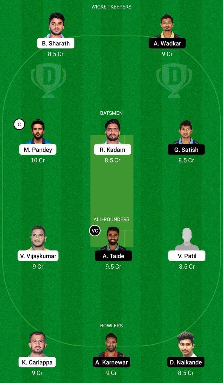 Fantasy Suggestion #1: BR Sharath, A Wadkar, M Pandey, R Kadam, G Satish, V Vijaykumar, A Taide, V Patil, KC Cariappa, A Karnewar and D Nalkande
