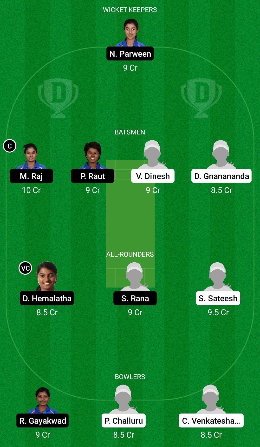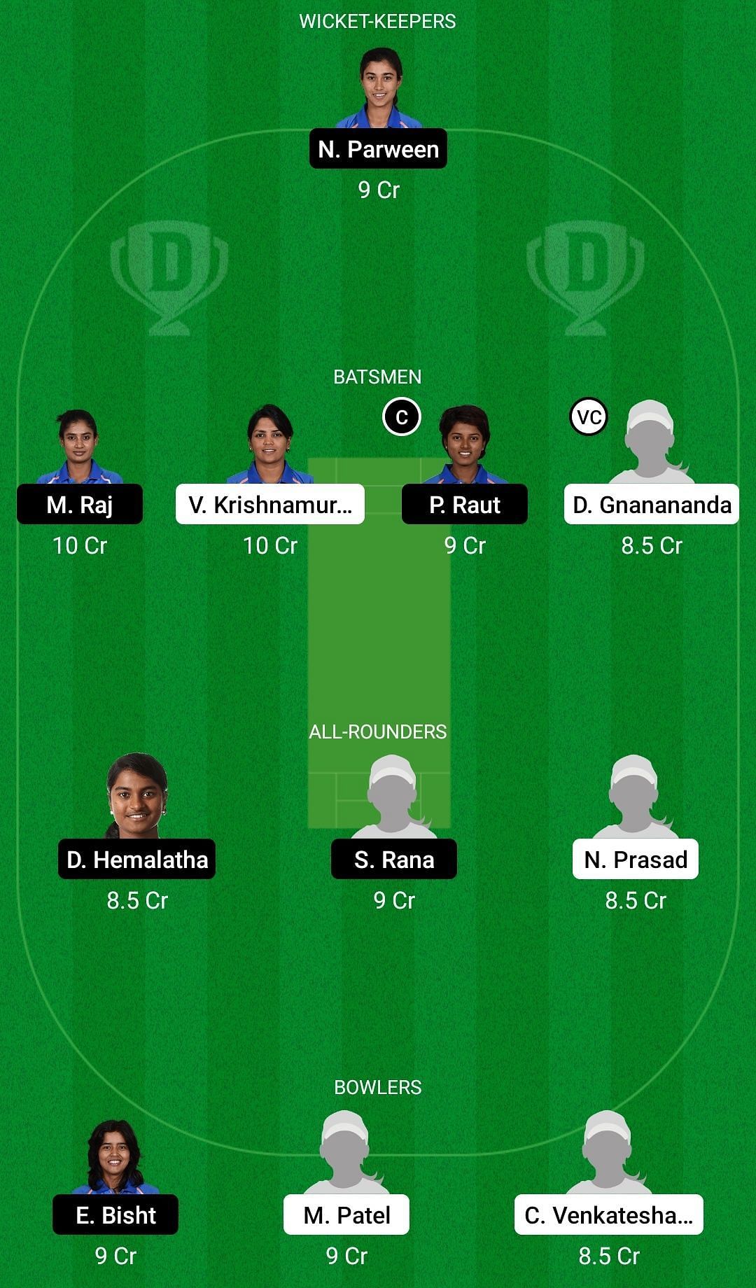 Fantasy Suggestion #2: Nuzhat Parween, Punam Raut, Mithali Raj, V Dinesh, G Divya, D Hemalatha, Sneh Rana, S Shubha, Rajeshwari Gayakwad, C Prathyusha, Chandu V