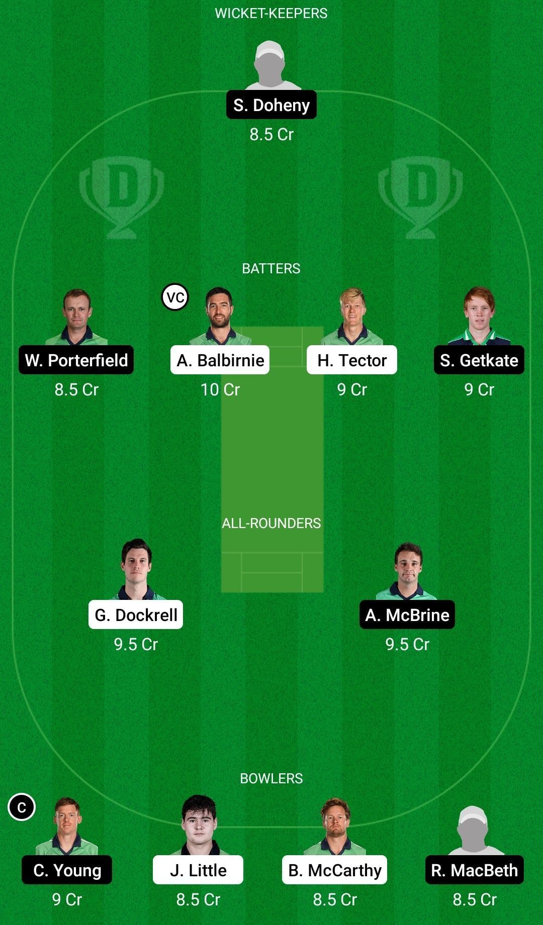 Fantasy Suggestion #1: Stephen Doheny, Andrew Balbirnie, Harry Tector, Shane Getkate, George Dockrell, Andy McBrine, Simi Singh, Graham Hume, Craig Young, Josh Little, Barry McCarthy.