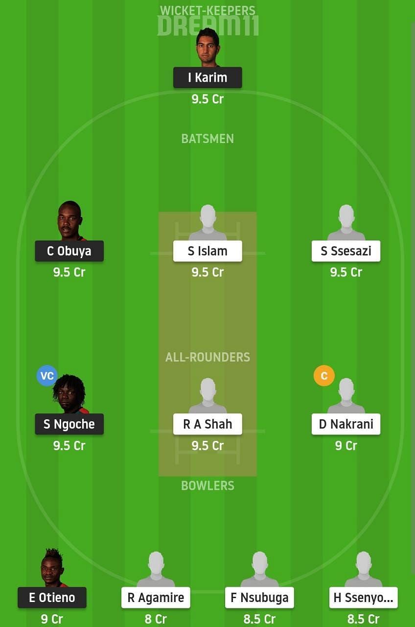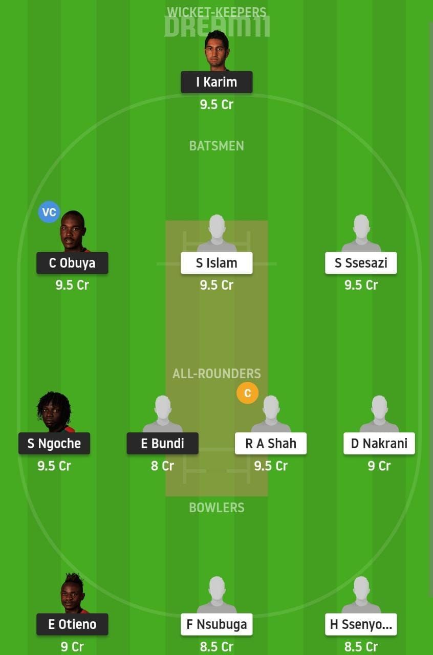 Fantasy Suggestion #1: I Karim, S Ssesazi, S Islam, C Obuya, D Nakrani, R A Shah, S Ngoche, H Ssenyondo, F Nsubuga, R Agamire, E Otieno