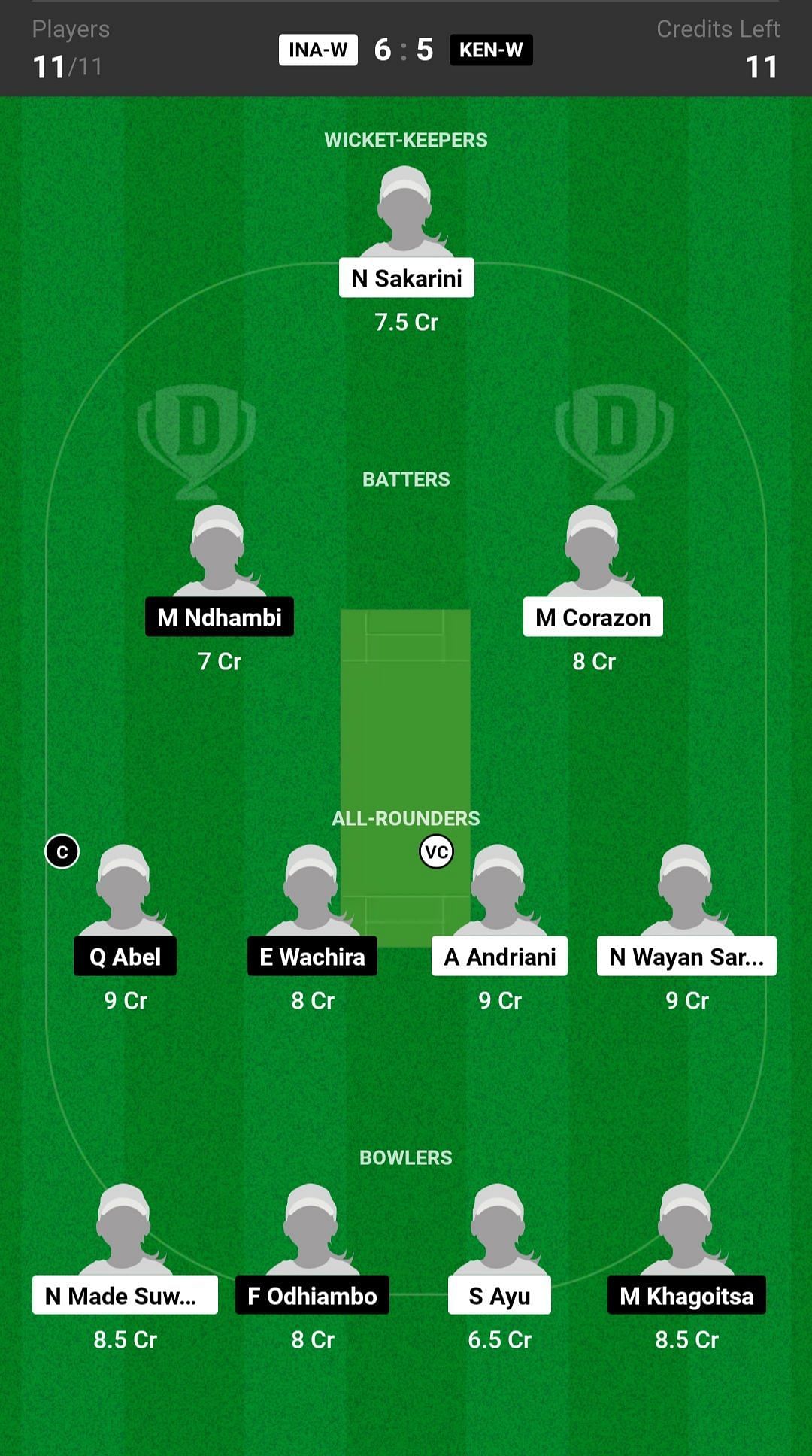 Kenya Women vs Indonesia Women Dream11 Prediction Today, Grand League