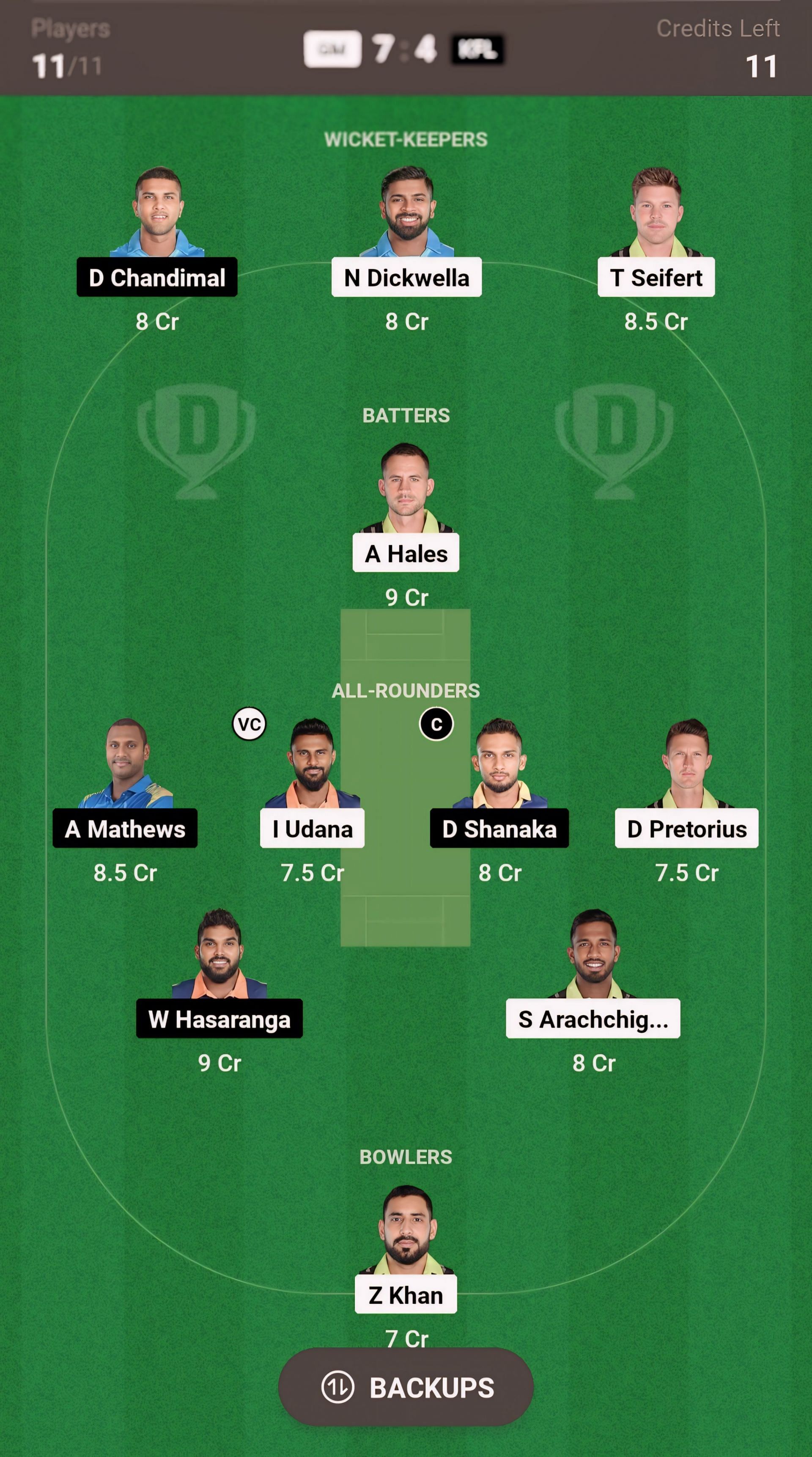Niroshan Dickwella is no doubt the best wicket-keeper pick for today's match. He will bat in the top order and has already scored 109 runs in the last three matches. Tim Seifert is another good wicket-keeper pick, who has smashed 126 runs in the last three matches.