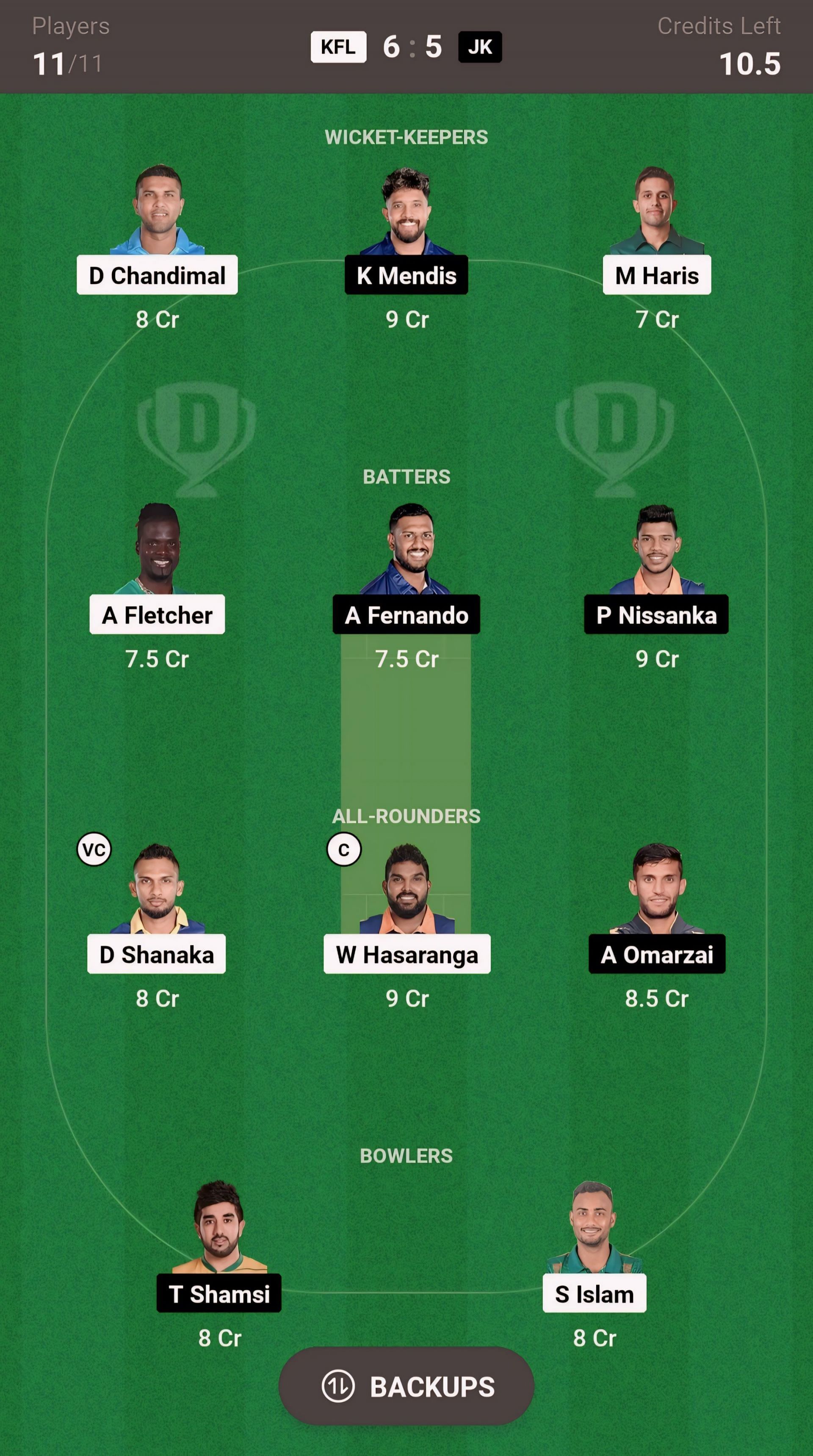 Dasun Shanaka is one of the best picks for today's match. He will play a crucial role both with bat and ball in today's match. He has already smashed 60 runs and taken 5 wickets in the last four matches.
