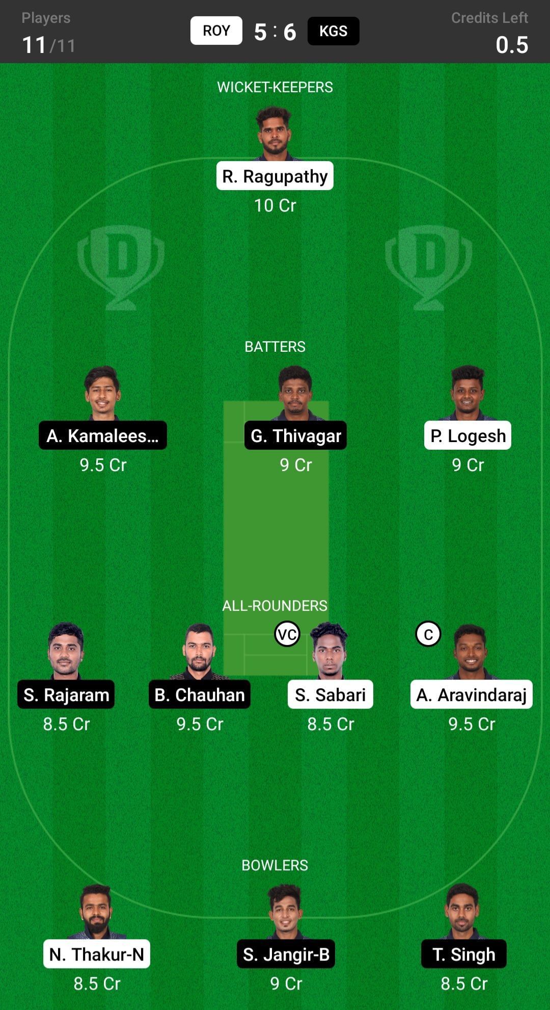 Kings vs Royals Dream11 Prediction Today (BYJU's Pondicherry T10 League 2022)