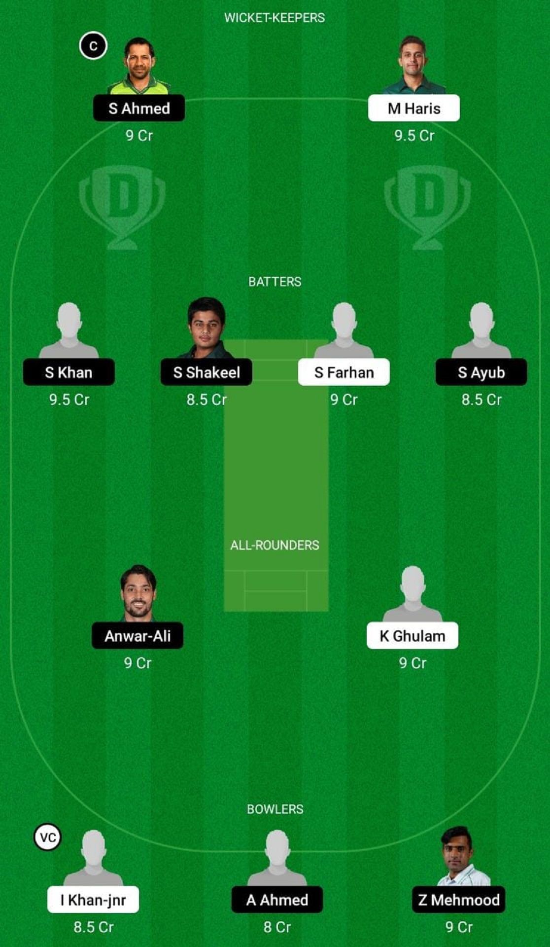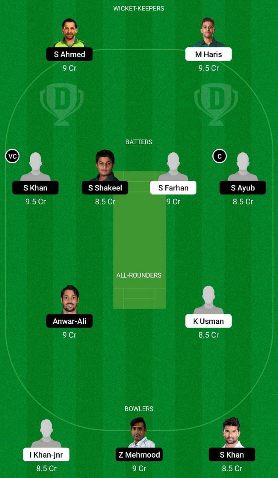 Sharjeel Khan, Omair Yousuf, Saim Ayub, Saud Shakeel (C), Saad Khan, Sohail Khan, S Ahmed, Anwar Ali, Zahid Mahmood, Mir Hamza, Abrar Ahmed