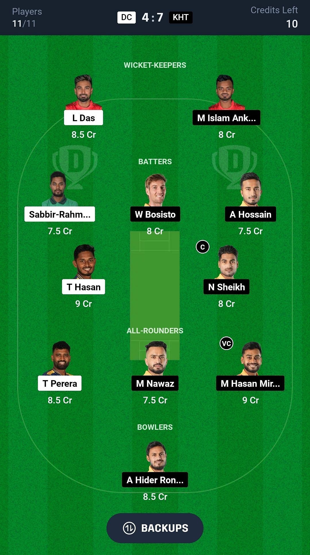 Litton Das is no doubt the best wicket-keeper pick for today's match. Das is expected to bat in the top order and perform the wicket-keeping duties for his team. He has smashed 358 runs in the last 10 matches. Mahidul Islam Ankon is another good wicket-keeper option for today's match.