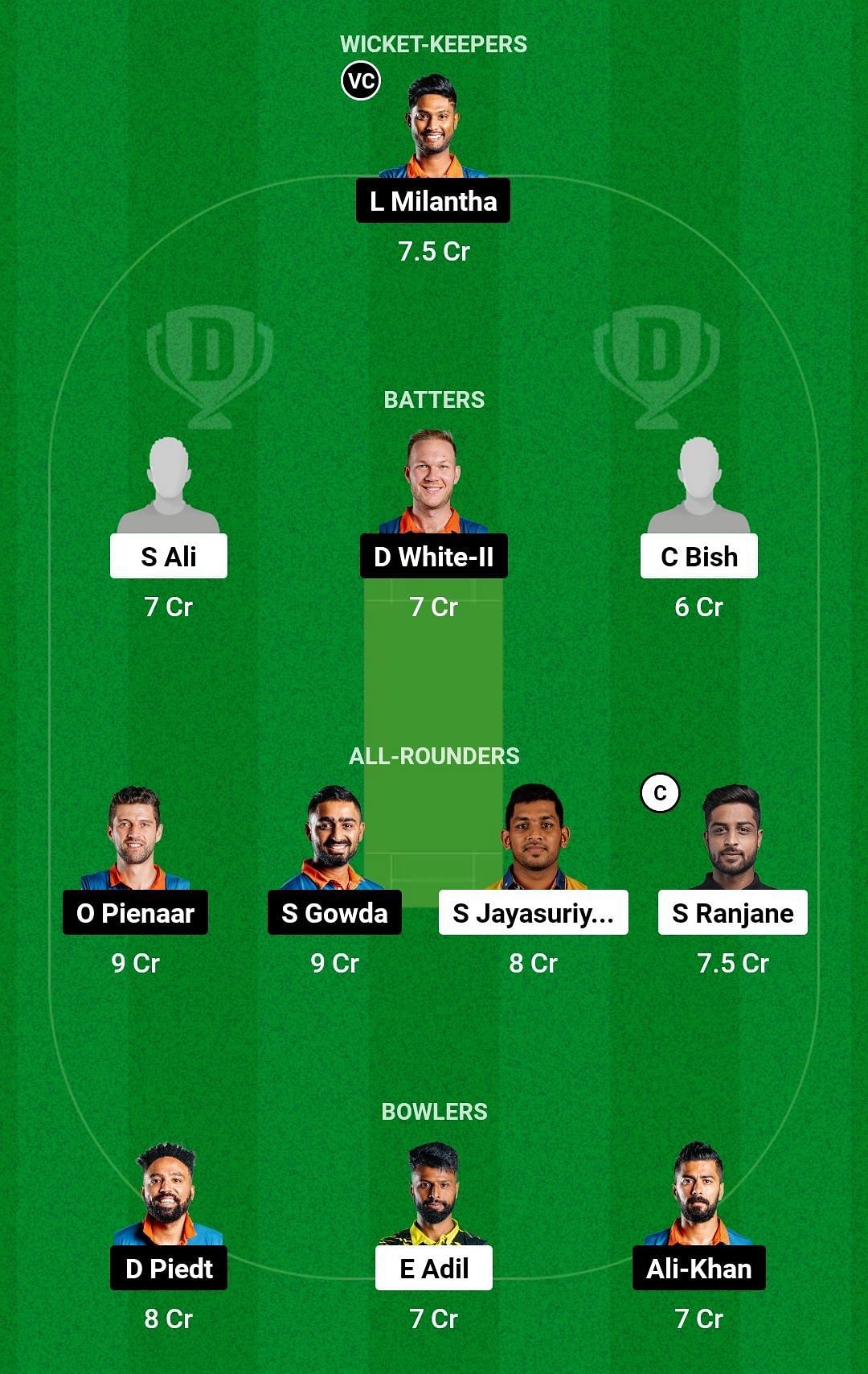 SAMP Army Probable Playing XI: David White, Lahiru Milantha (wk), Cody Chetty, Sujith Gowda, Abhiram Bolisetty, Phani Simhadri, Marty Kain, Dane Piedt, Obus Pienaar, Shadley van Schalkwyk, Ali Khan.