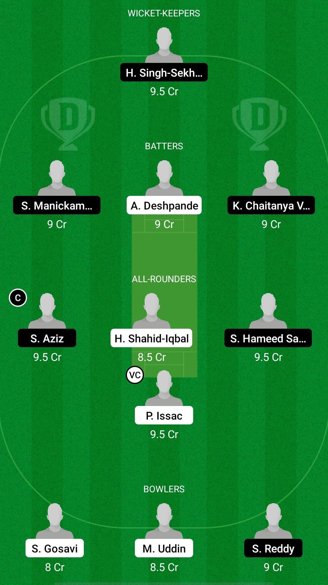 Fantasy Suggestion #1: Harinderjit Singh Sekhon, Jerin Raj, Senthil Manickam Rajendran, Krishna Chaitanya Varma, Syed Aziz, Shahul Hameed Sahib, Tanveer Khan, Peter Issac, Abraham Joseph Cherian, Santosh Gosavi, Surendra Reddy.