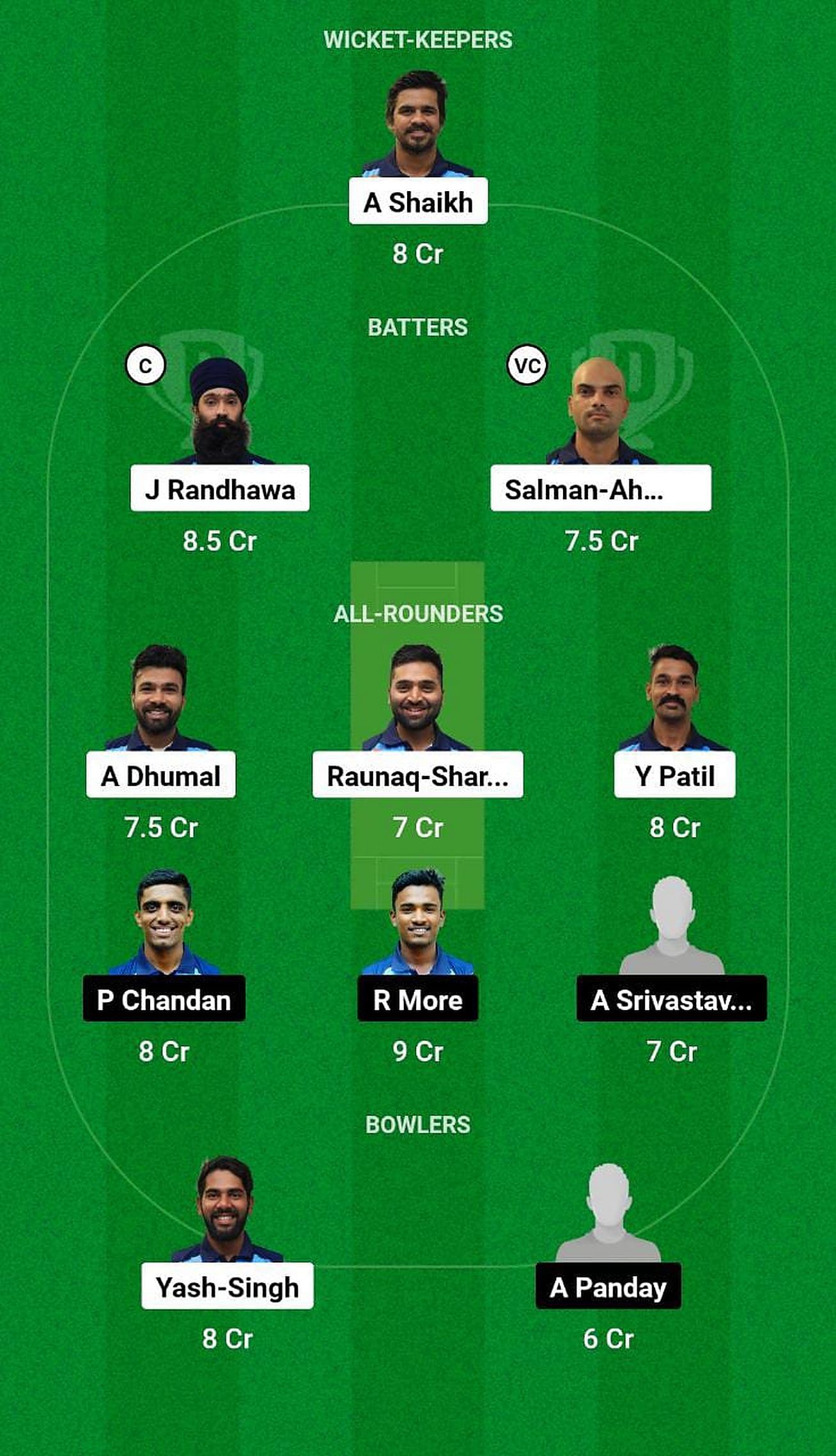 Rugved More (c), Jahangir Ansari, Srujan Athawle, Amit Panday, Satyalaksh Jain, Prateet Gotsurve, Parth Chandan, Yaseen Shaikh, Shashank Shekhar (wk), Abhishek Srivastava, Ankit Chavan.