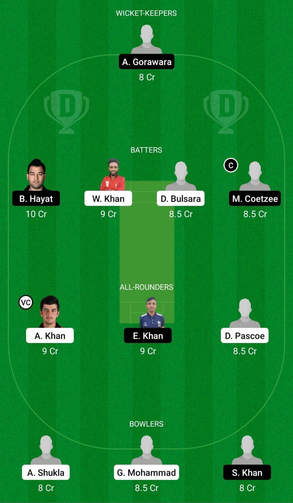 Fantasy Suggestion #1: Adit Gorawara, Martin Coetzee, Waqas Khan, Aizaz Khan, Ehsan Khan, Ghazanfar Mohammad, Sheryar Khan, Babar Hayat, Daniel Pascoe, Devang Bulsara, Ayush Shukla