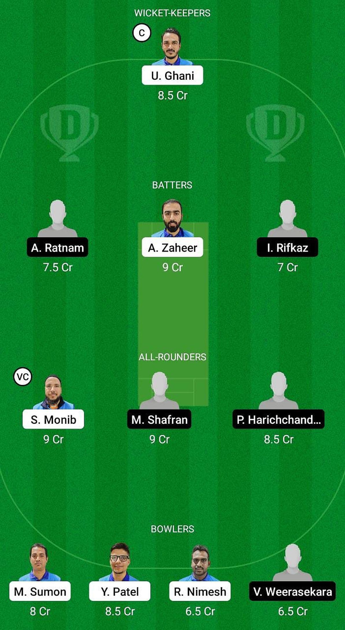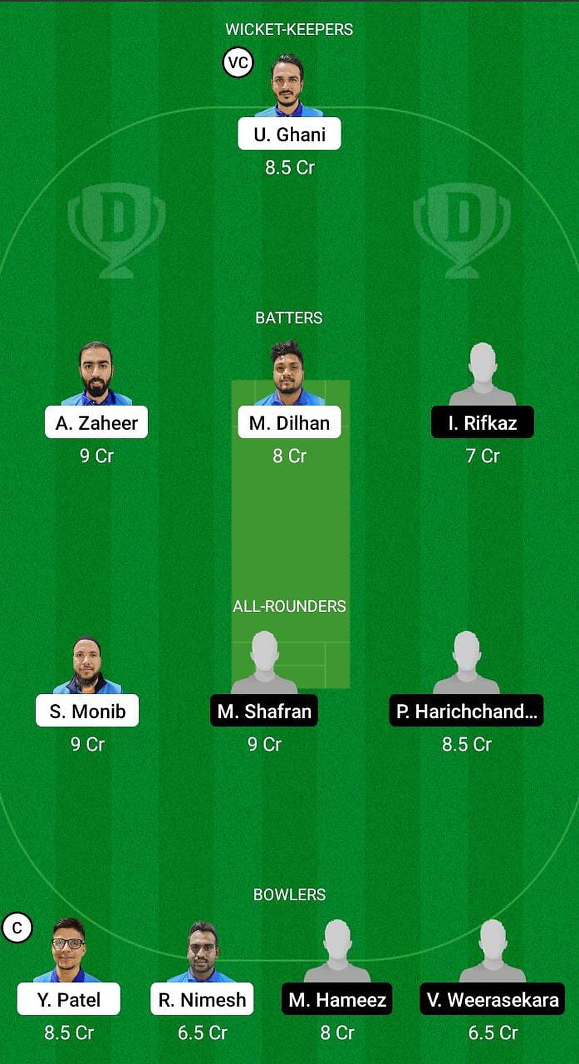 All-rounders: Priyakanth Harichchandra, Sayed Monib (vc), Mohamed Shafran