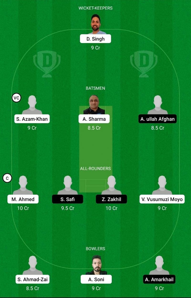 Captain: Safiullah Ahmadzai Vice-captain: Avi Soni