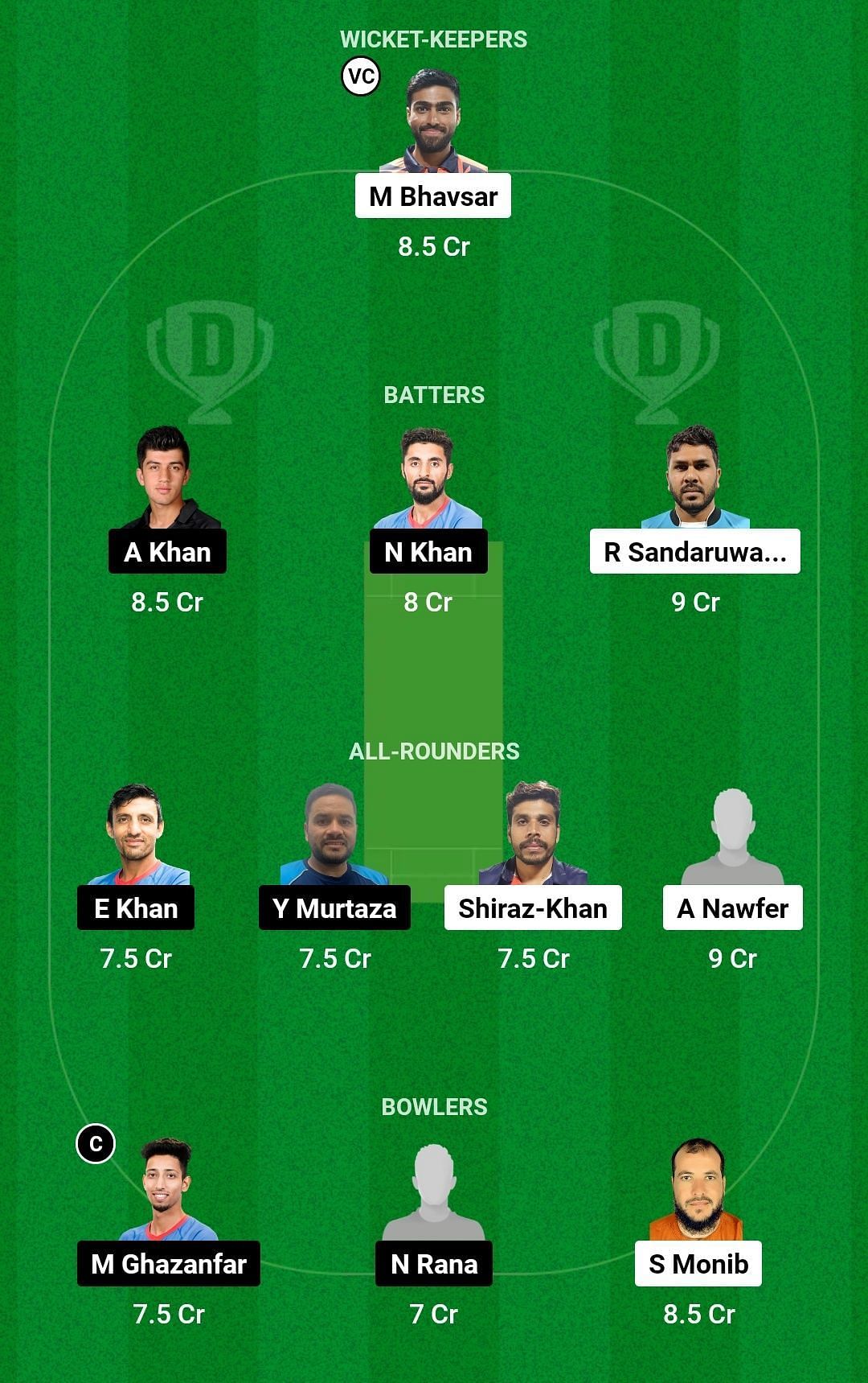 Both teams have some consistent all-rounders and quality top-order batters. Thus, the likes of Aizaz Khan, Ehsan Khan, Adnan Idrees, Mohammed Aslam Nawfer Meet Bhavsar, Nizakat Khan, and Ravija Sandaruwan will be the key picks for this encounter.