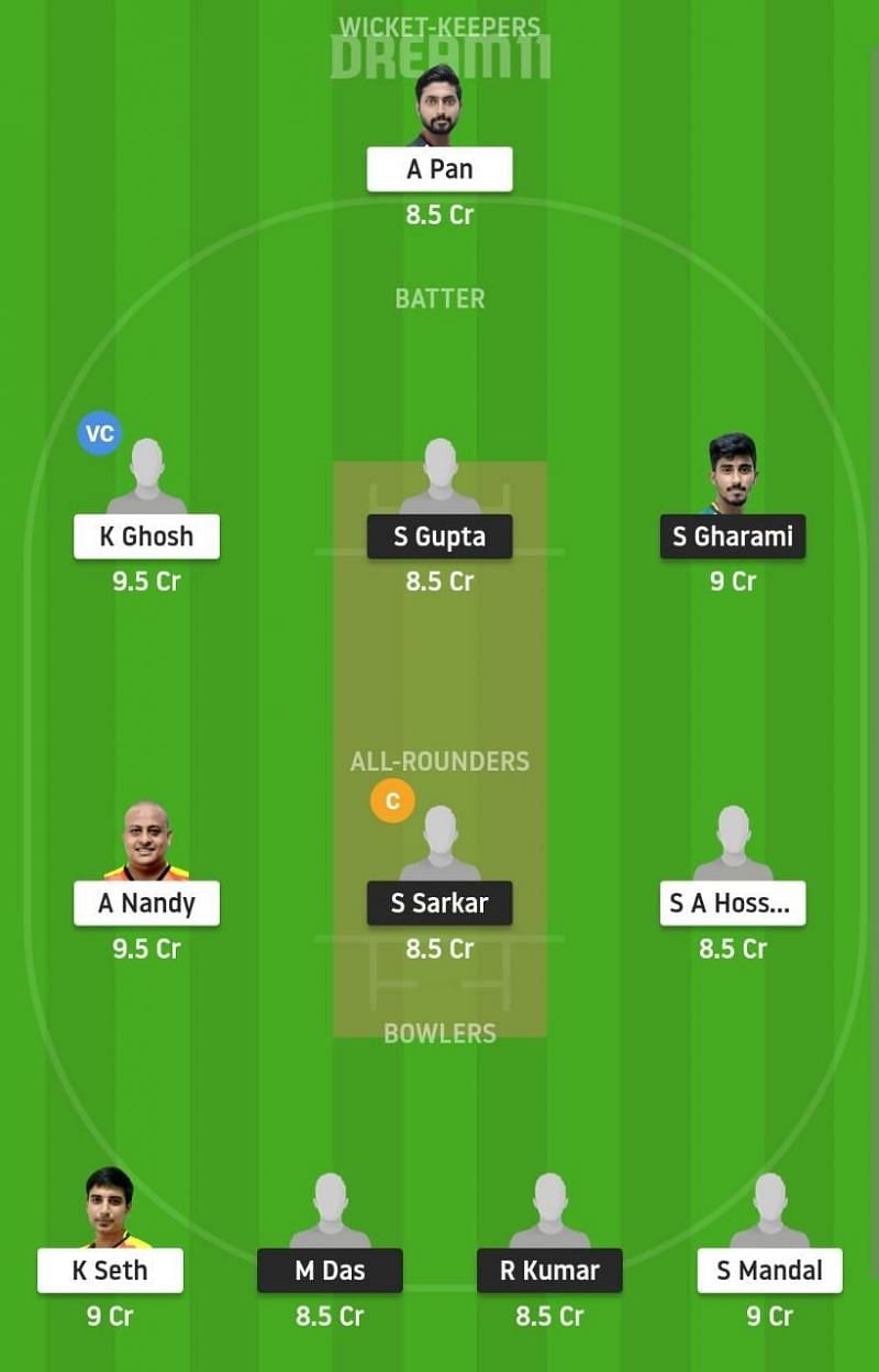 Captain: S Sarkar, Vice-Captain: K Ghosh