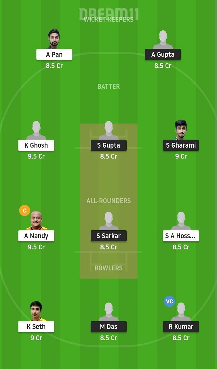 Arnab Nandi (c), Agniv Pan(wk), Koushik Ghosh, SK Asif Hussain, Diganta Neogi, Ayan Gupta, Kanishk Seth, Ayush Kumar Singh, Shreyan Chakraborty, Suraj Sindhu Jaiswal, Soumyadip Mandal