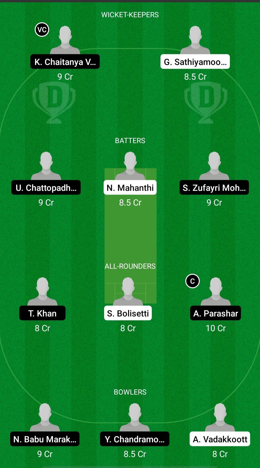 Captain: Abhishek Parashar. Vice-captain: Krishna Chaitanya Varma.