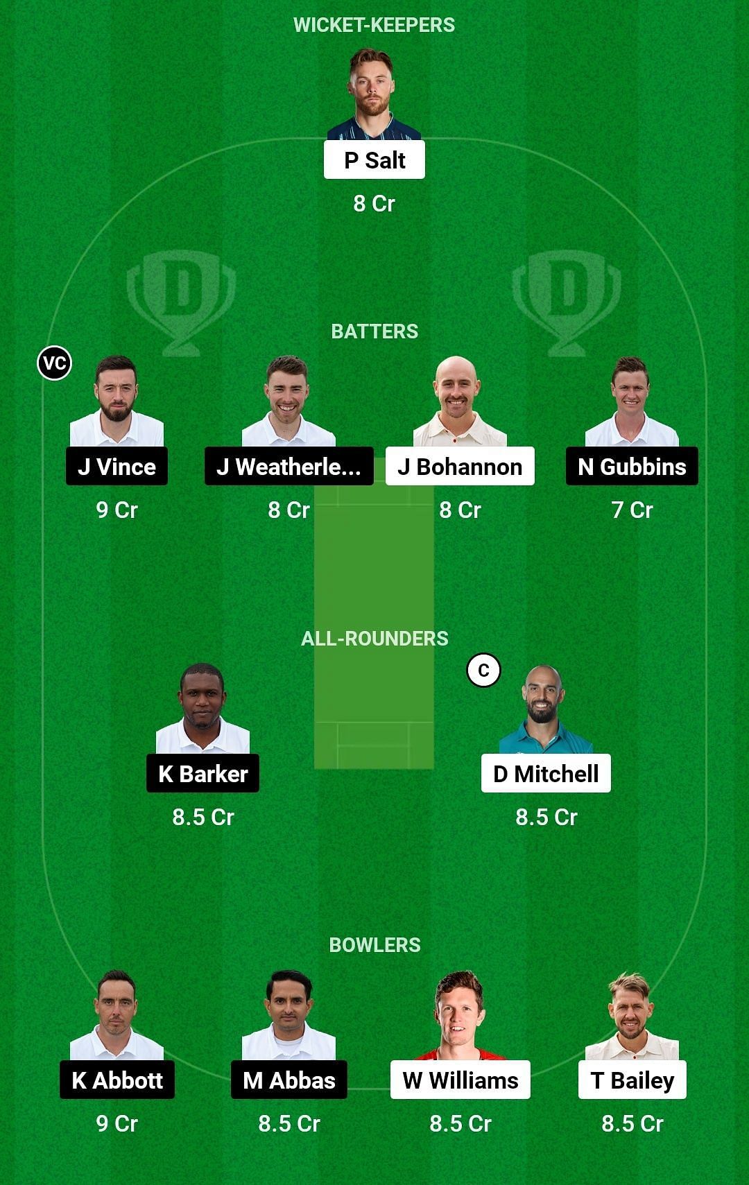 Both teams have some quality seam bowlers and consistent top-order batters. Thus, they could be the key. The likes of James Vince, Nick Gubbins, Daryl Mitchell, Kyle Abbott, Mohammad Abbas, Will Williams, and Tom Bailey could be the ones to watch out for.