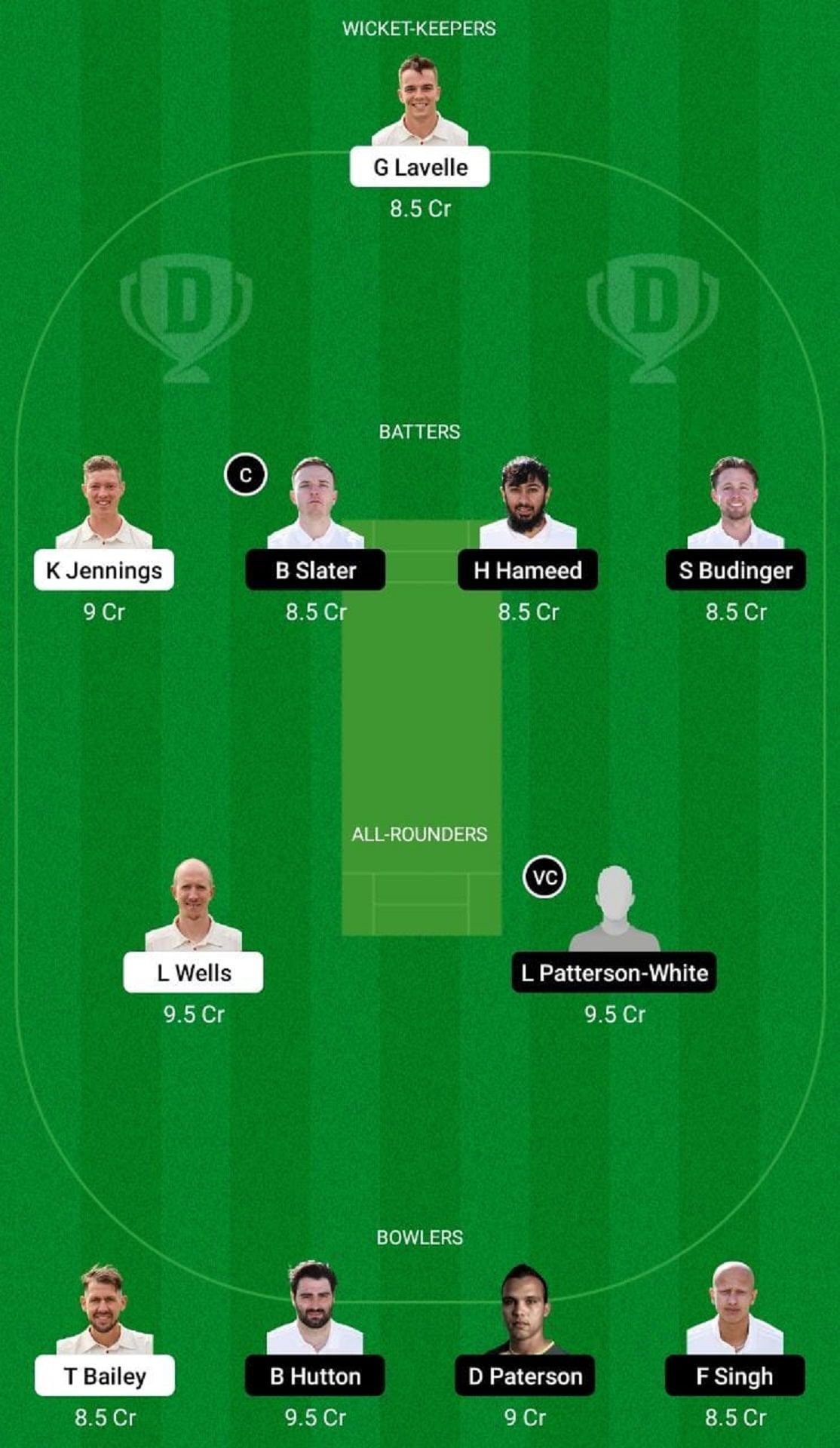 Batters: Ben Slater, Sol Budinger, Haseeb Hameed, Keaton Jennings