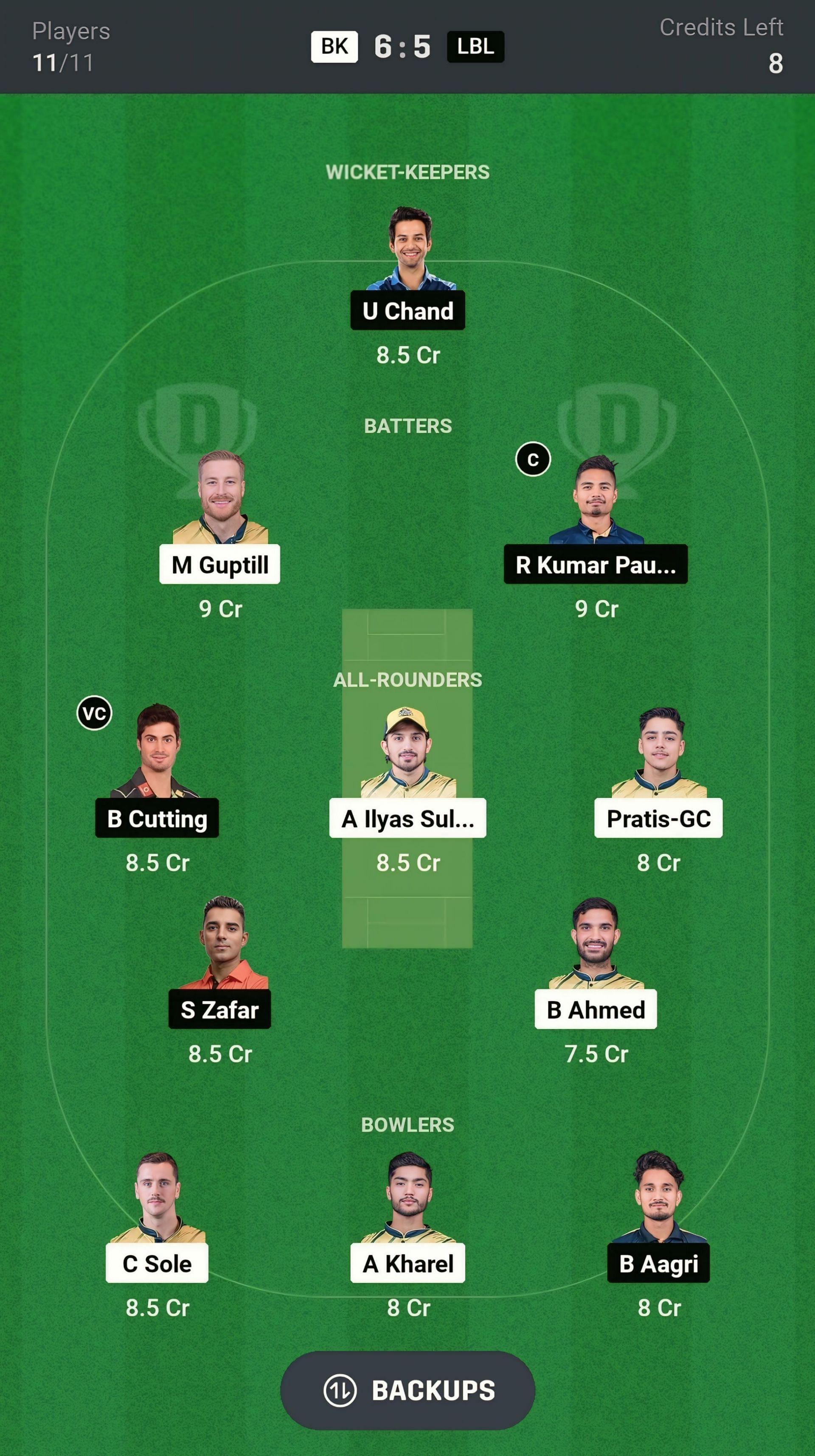Pratis GC and Ben Cutting are the best all-rounder picks for the Dream11 team. Pratis GC will bat in the middle order and bowl a good number of overs in today's match. Saad Zafar is another good all-rounder for today's nail-biting match.
