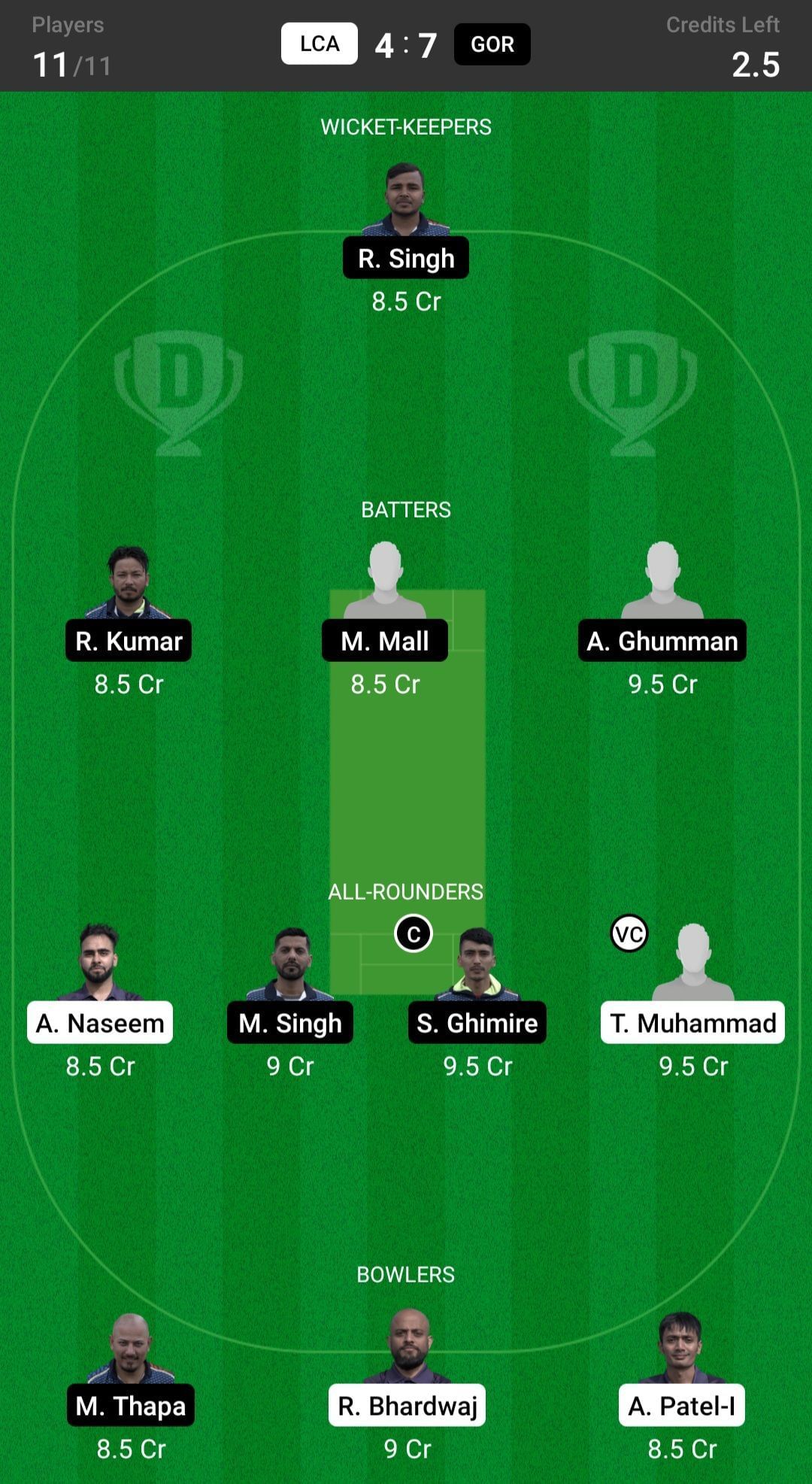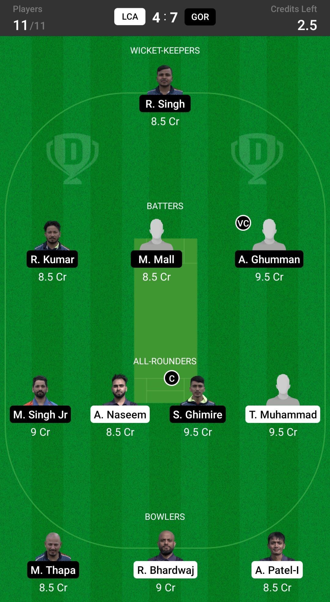 Top players to pick in LCA vs GOR Dream11 prediction team