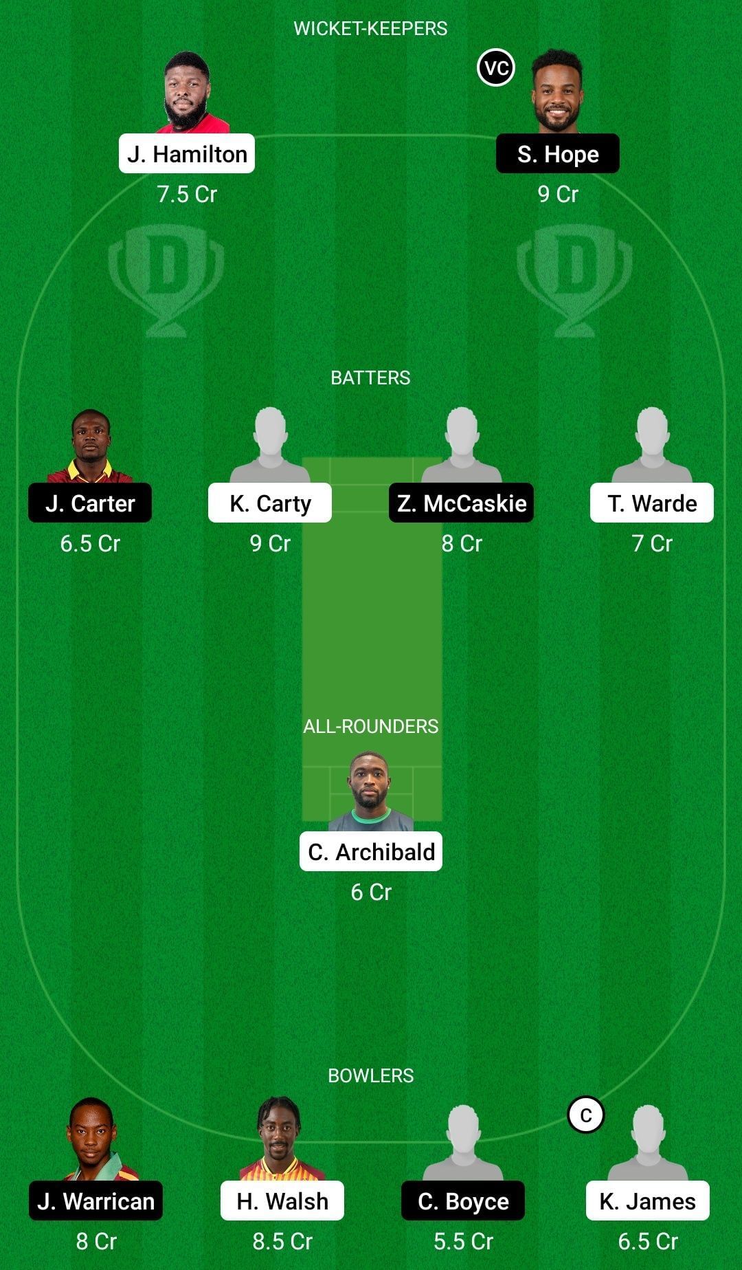 Bowlers: Jomel Warrican, Shamar Springer, Hayden Walsh, Kofi James