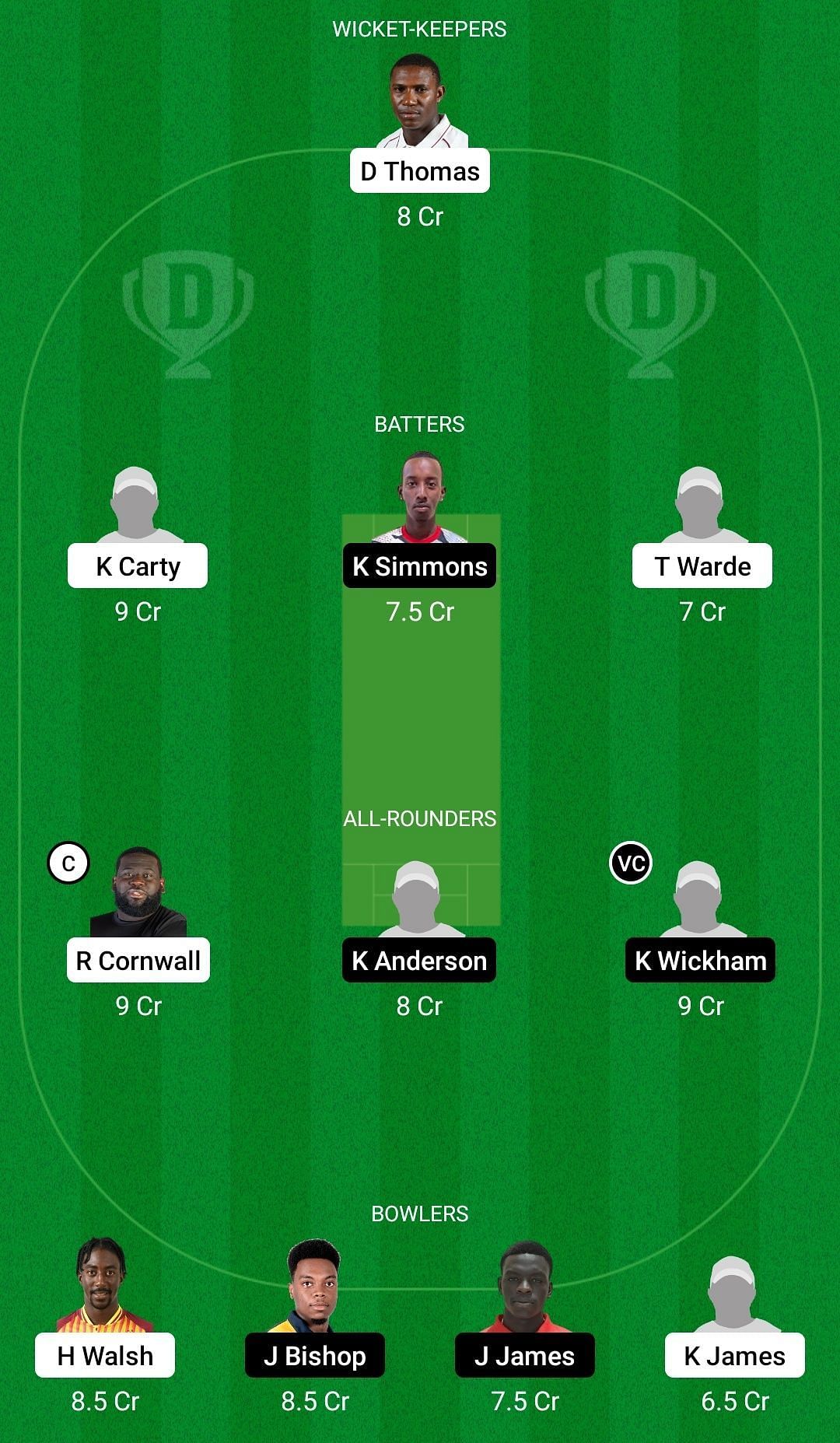 Bowlers: Hayden Walsh, Joshua Bishop, Joshua James, Kofi James