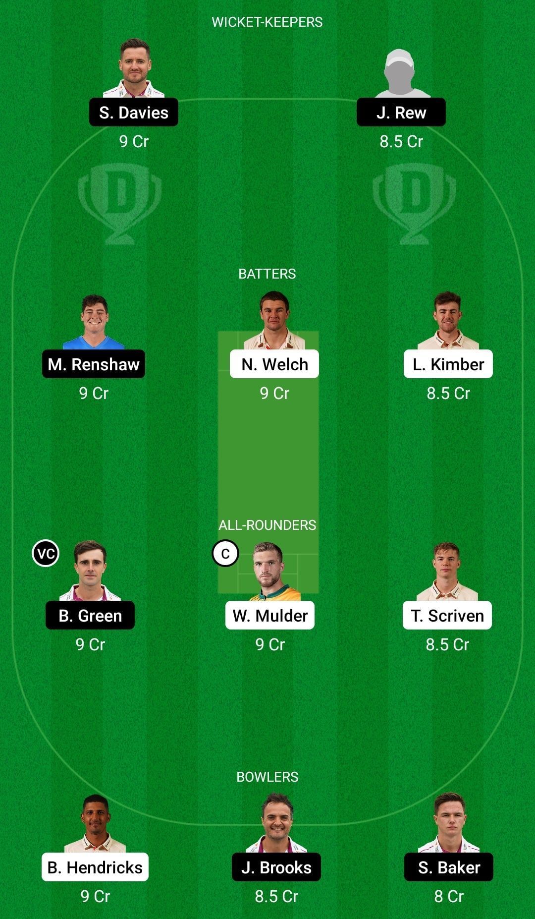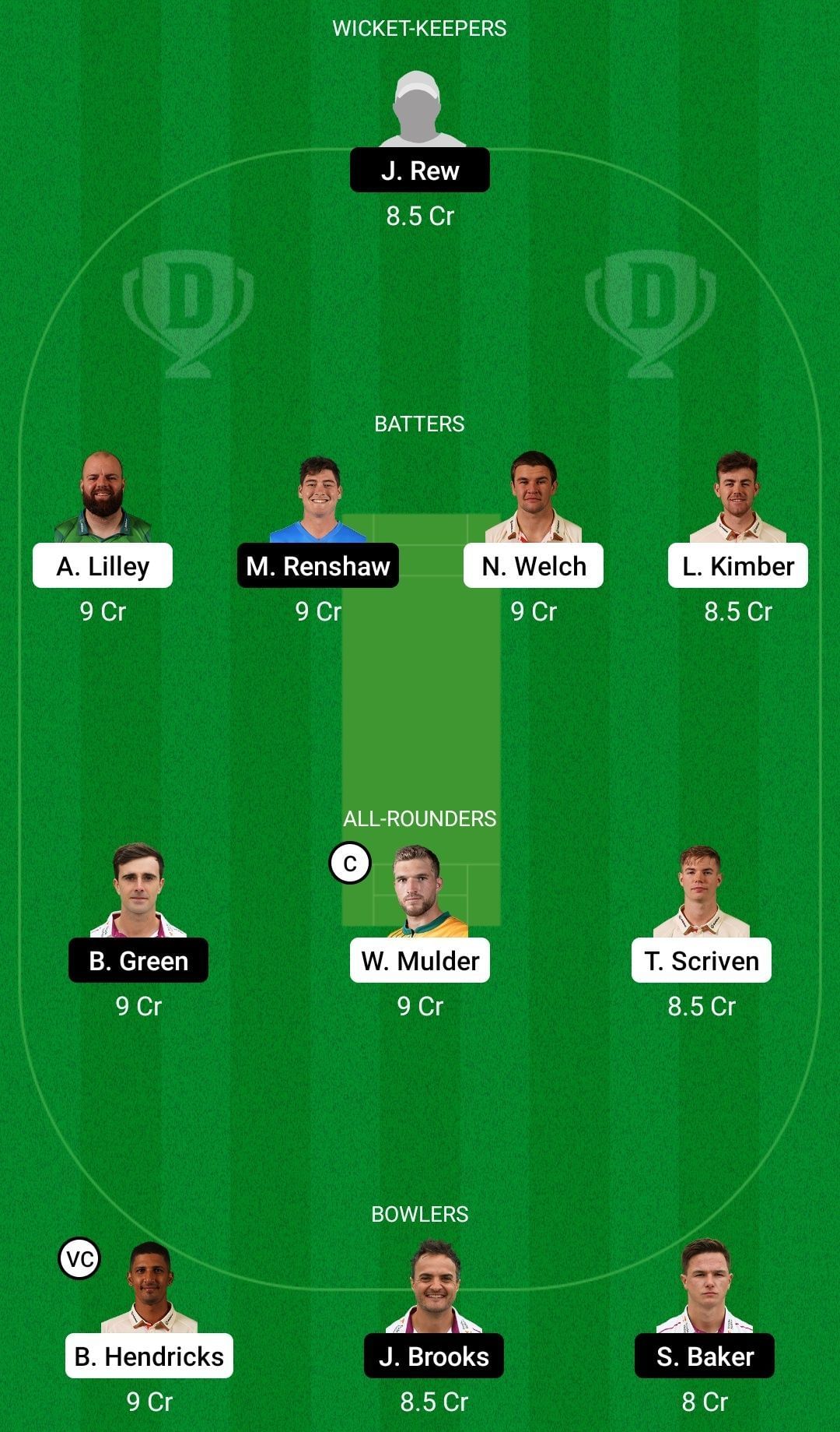 Fantasy Suggestion #1: Steven Davies, James Rew, Matt Renshaw, Nick Welch, Louis Kimber, Ben Green, Wiaan Mulder, Tom Scriven, Beuran Hendricks, Jack Brooks, Sonny Baker.