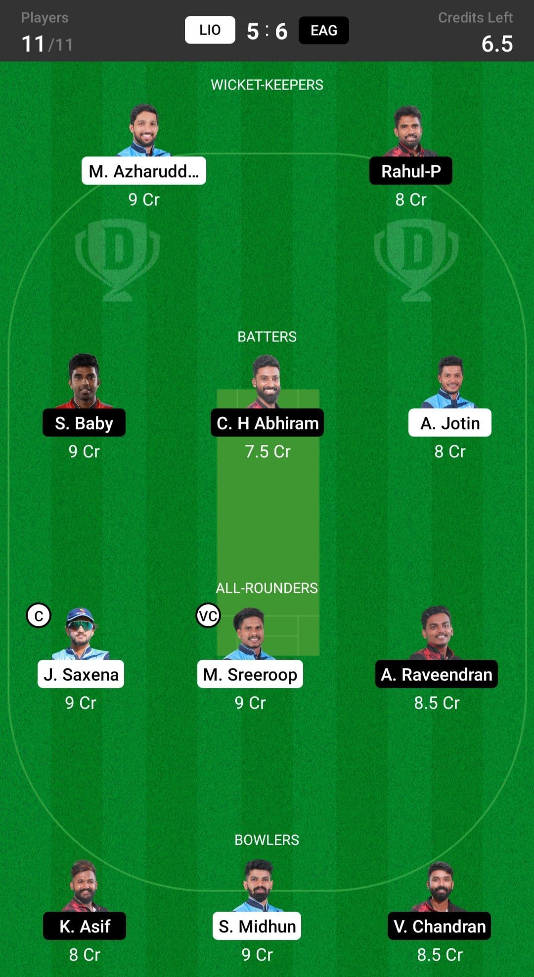 KCA Lions vs KCA Eagles Dream11 Prediction Today, Grand League
