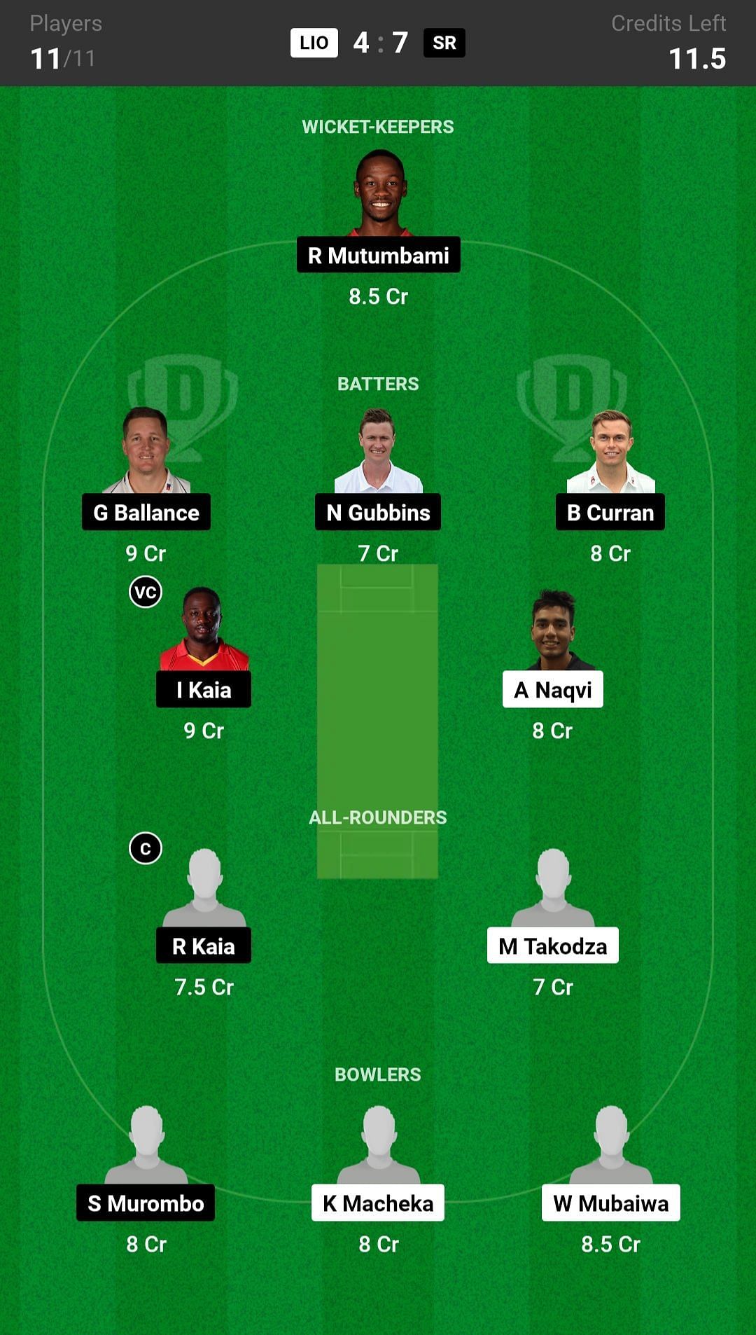 LIO vs SR match captain and vice-captain choices
