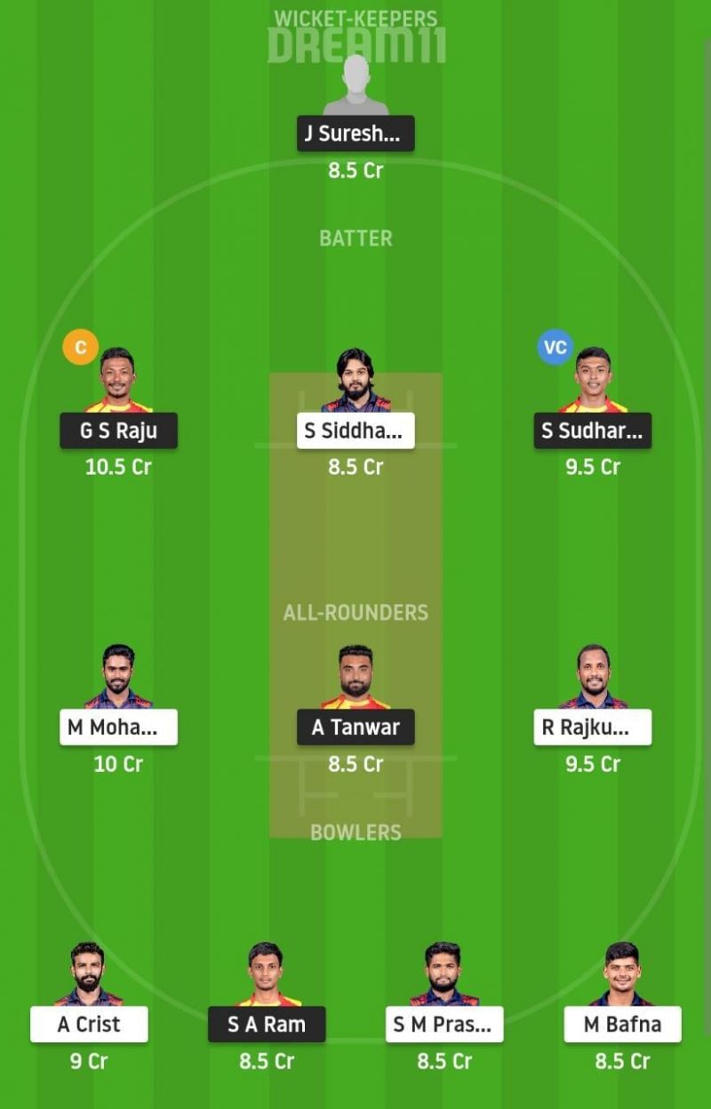 Captain: G S Raju, Vice-Captain: S Sudharsan