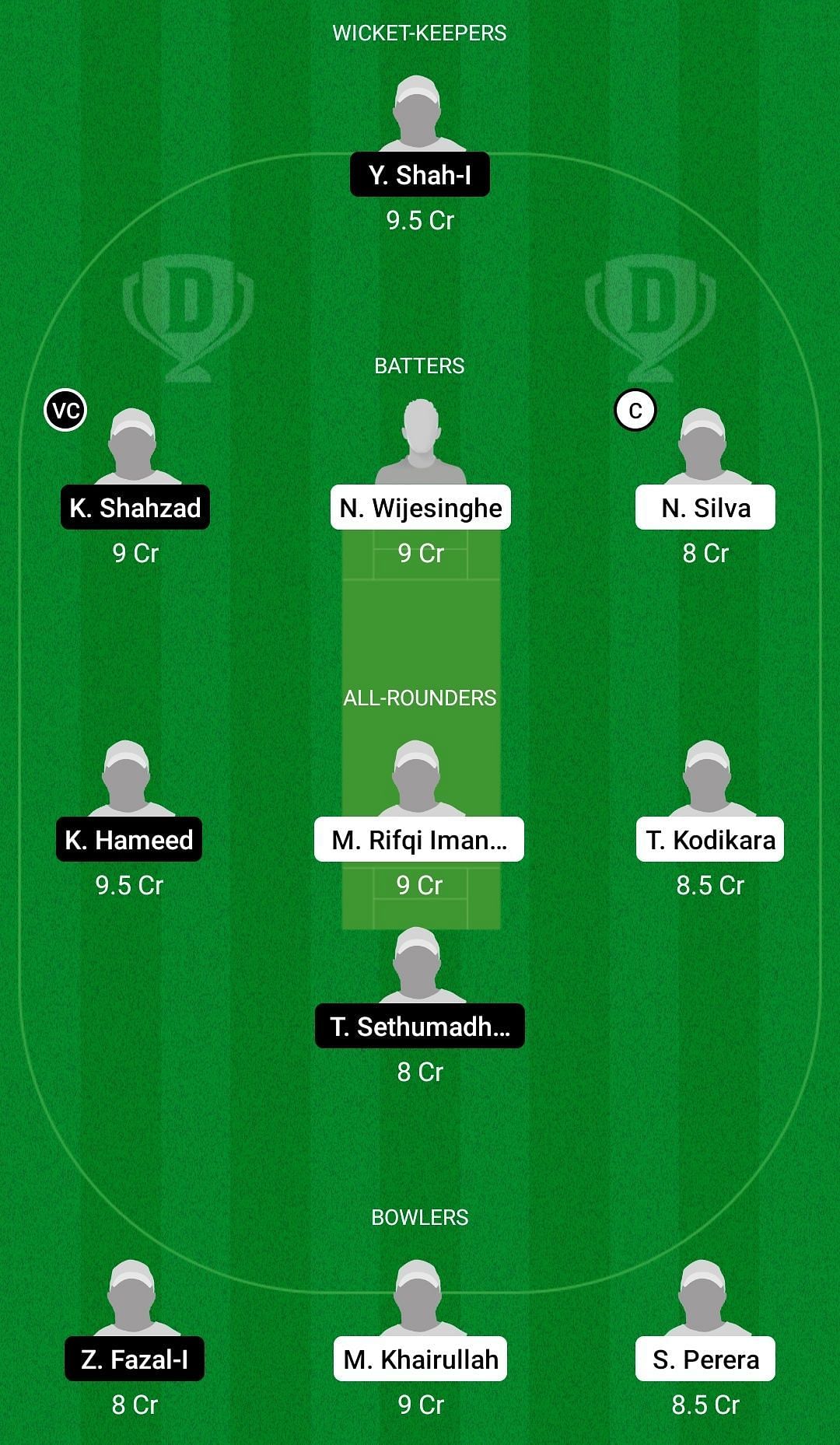 Captain: Nimesh-Rasanga Silva Vice-captain: Kashif Shahzad
