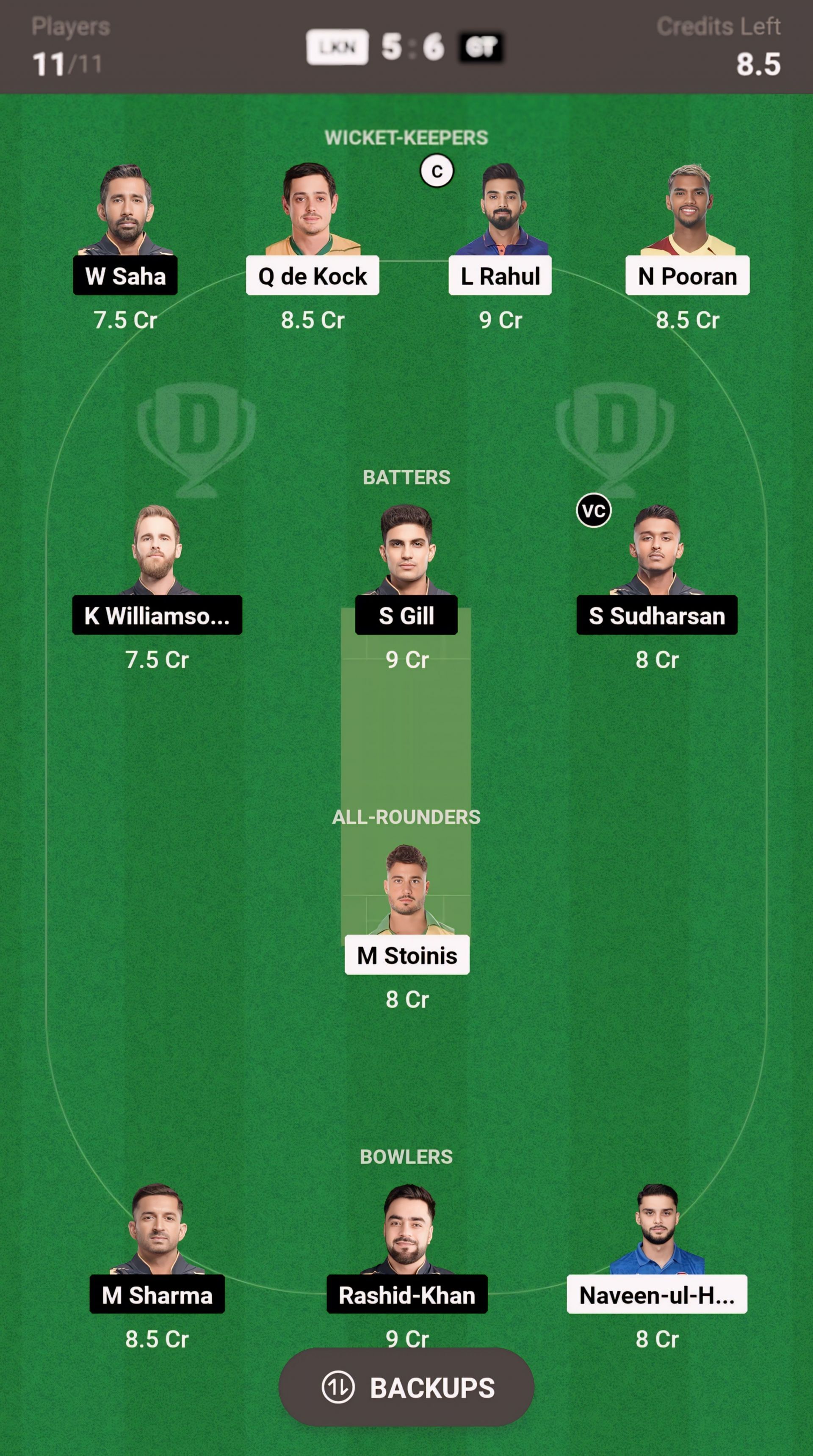 Lucknow SuperGiants vs Gujarat Titans Dream11 Prediction Today, Grand League