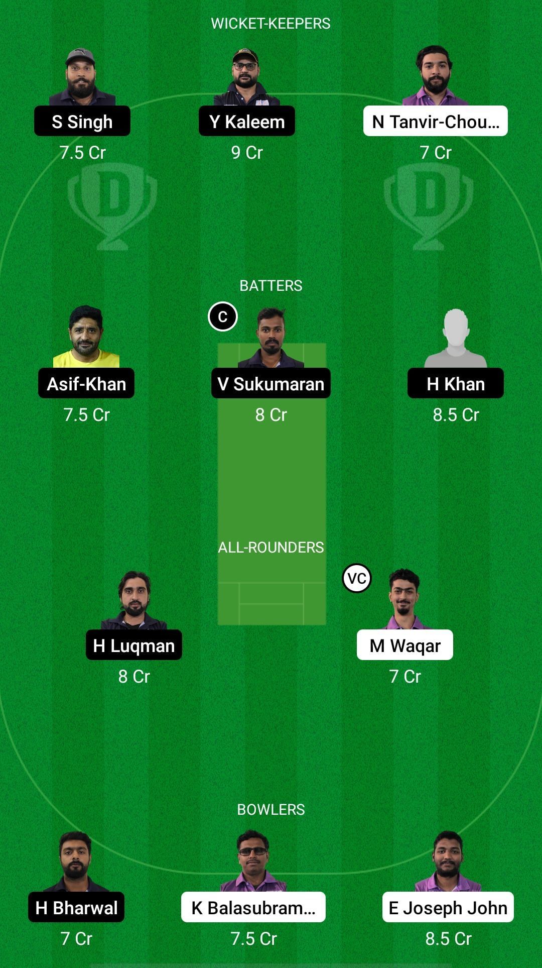Batters: Vishnu Sukumaran, Hameed Khan, Asif Khan