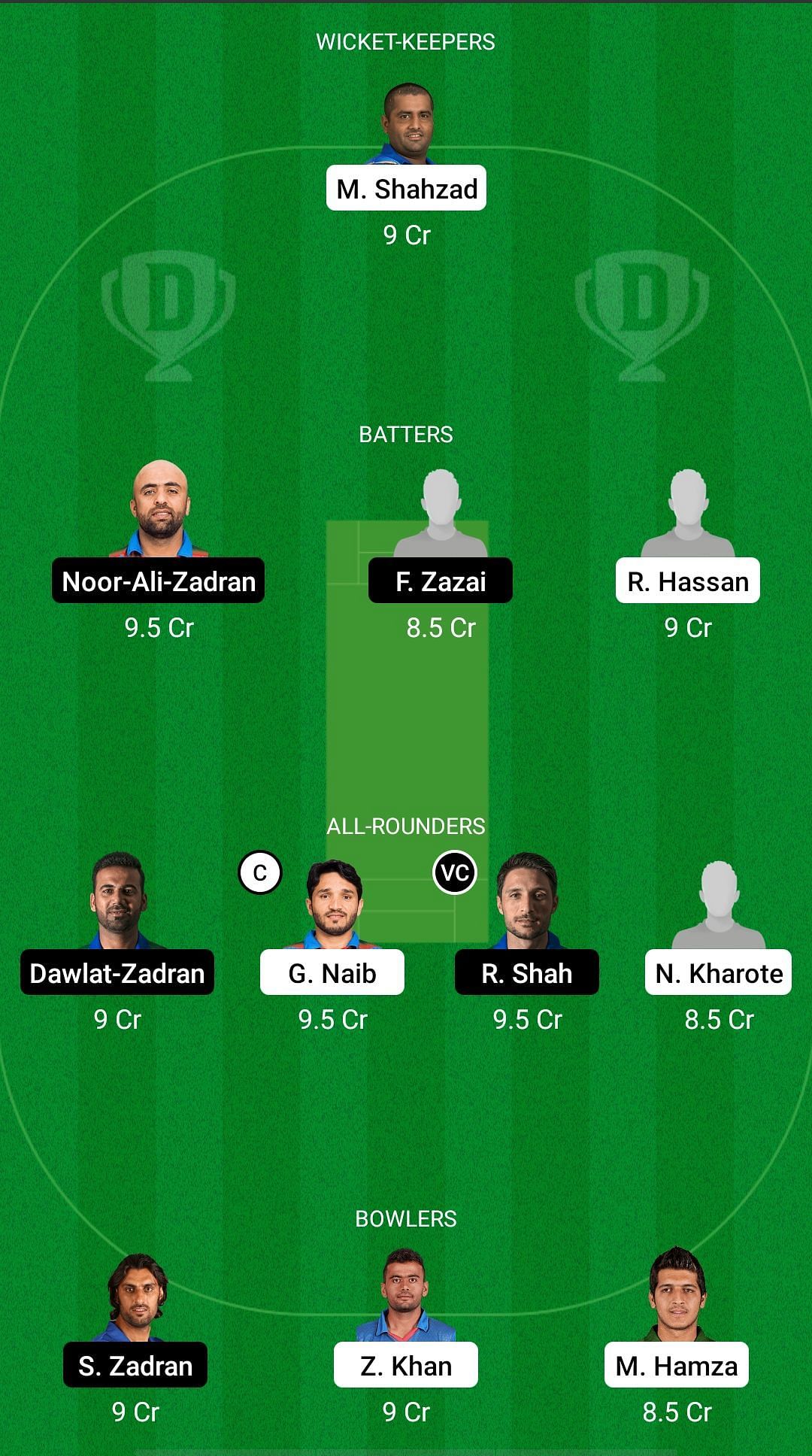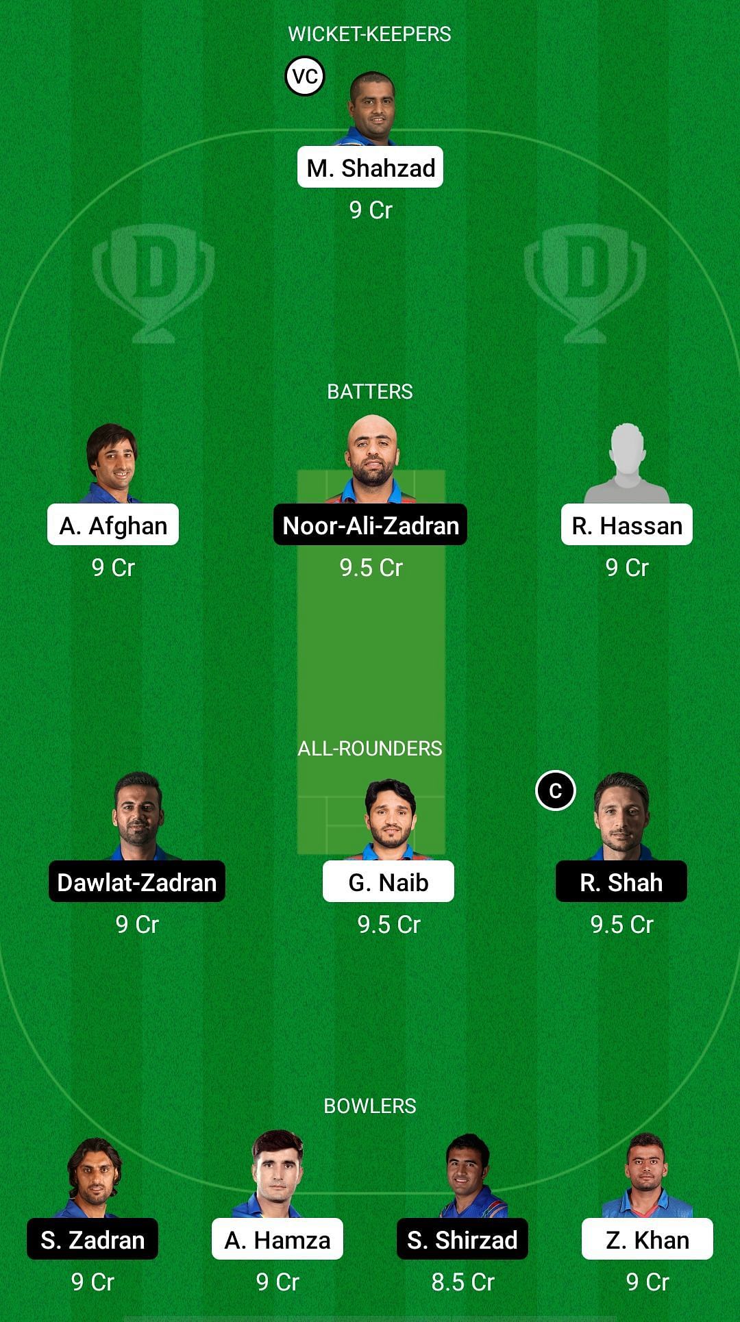 Captain: Rahmat Shah Vice-captain: Mohammed Shahzad