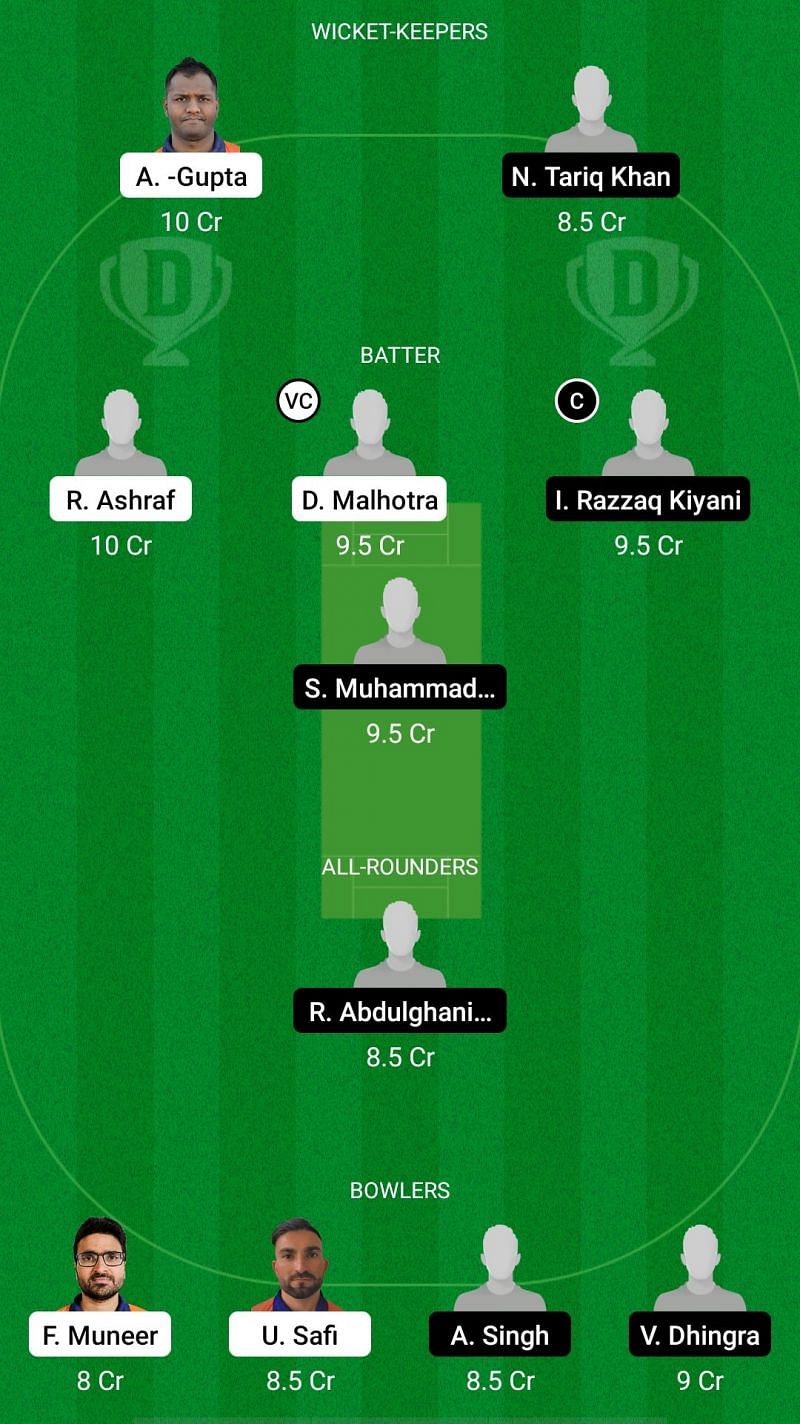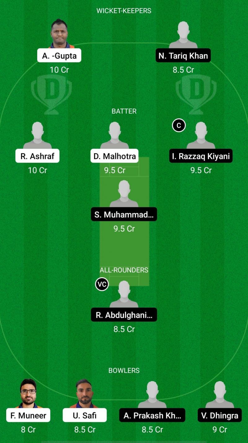 Fantasy Suggestion #1: Ankit Gupta, Nadeem Khan, Rizwan Tarar, Dheeraj Malhotra, Imran Kiyani, Saghar Hanif, Rameez Dalvi, Faraz Muneer, Usman Safi, Amritanshu Singh, Varun Dhingra.