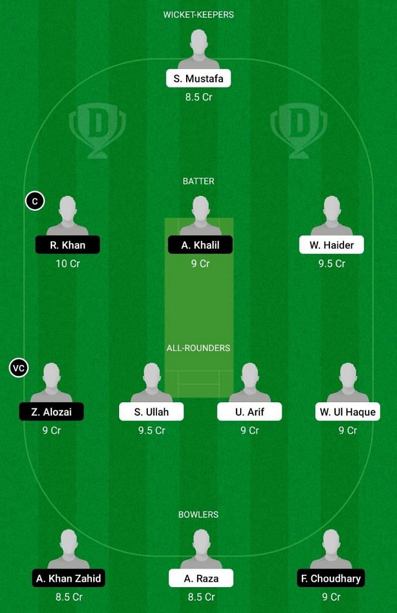 Fantasy Suggestion #2: Shahid Mustafa, Azam Khalil, Waqas Haider, Rahel Khan, Sweed Ullah, Zia Alozai, Waseem UI Haque, Usman Arif, Faseeh Choudhary, Aman Zahid, Ajmal Raza.