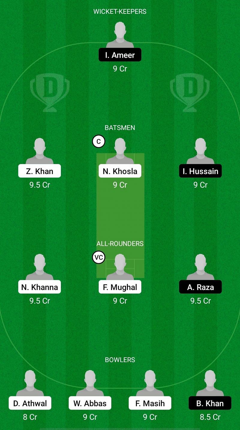 Fantasy Suggestion #1: Imran Ameer, Zeeshan Khan, Nowell Khosla, Ijaz Hussain, Niraj Khanna, Fanyan Mughal, Aqeel Raza, David Athwal, Waseem Abbas, Niraj Khanna, Bilal Khan.