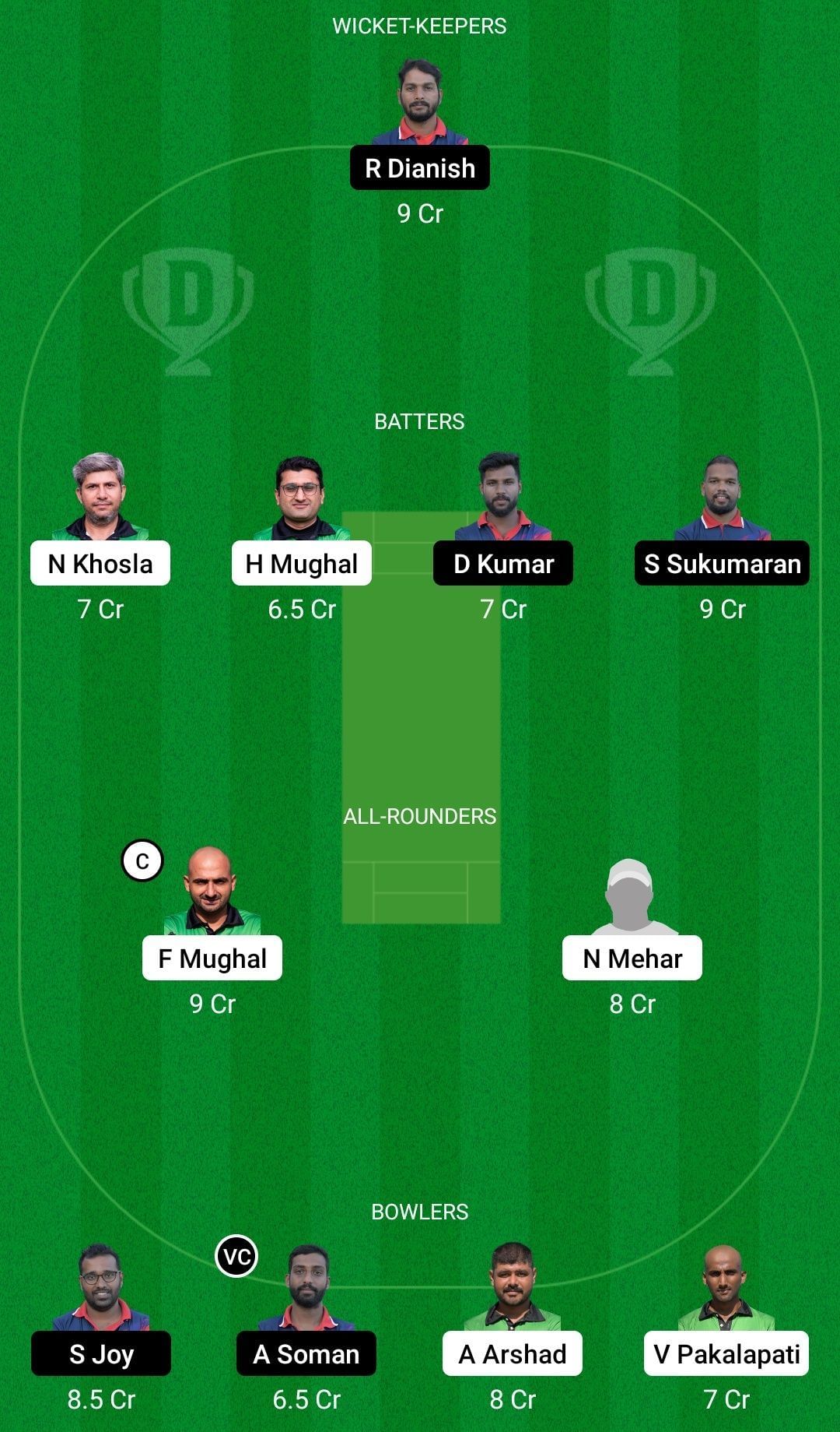 Batters: Nowell Khosla, Divyesh Kumar, Sajith Sukumaran