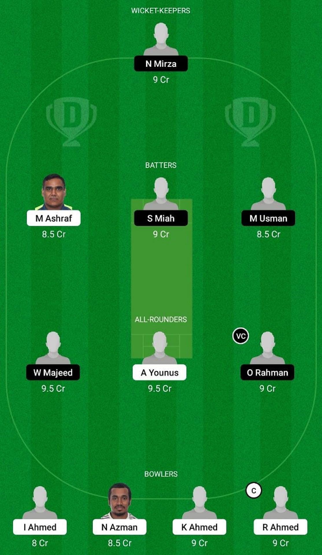 Abul Kalam Azad, Kamil Ahmed, Mashood Iqbal, Mirza Baig (C), Muhammad Ashraf, Noor Azman, Qadar Nawaz, Rasel Ahmed, Touseef Arshad, Waqar Hussain, Waqar Zafar.