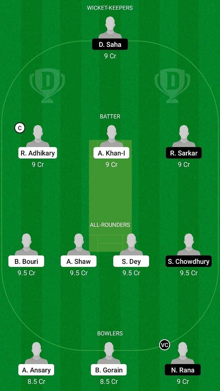 Fantasy Suggestion #1: D Saha, A Khan, A Jha, R Adhikary, R Sarkar, A Shaw, B Bouri, S Chowdhury, A Ansary, B Gorain, N Rana