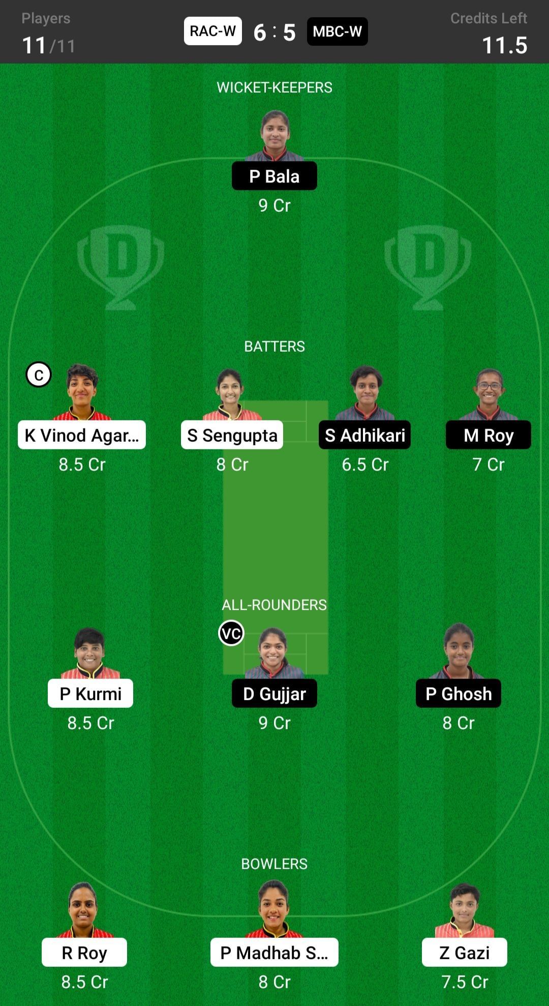 MBC-W vs RAC-W Dream11 Match Top Picks
