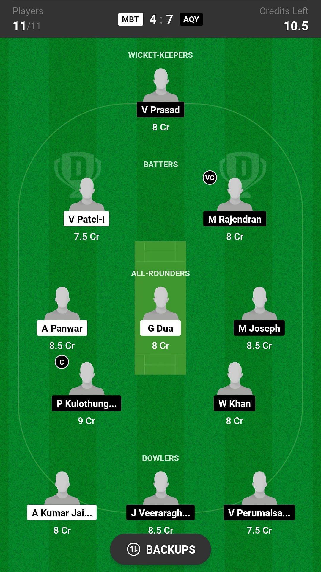 V Patel and M Rajendran are the two best batsmen picks for the Dream11 team. A Deewan played exceptionally well in the last series, so he is also a good pick for today's Dream11 fantasy team.