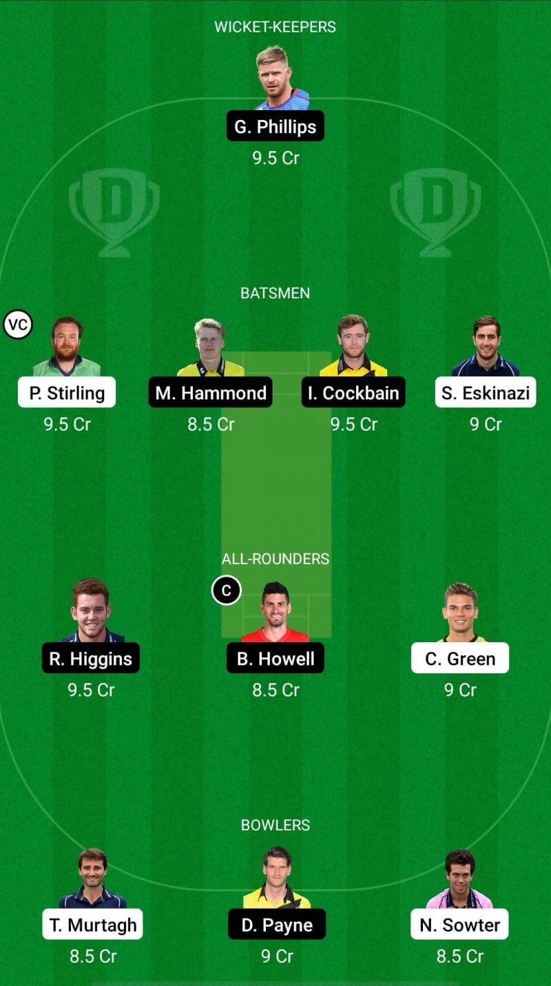 Fantasy Suggestion #2: John Simpson, Glenn Phillips, Eoin Morgan, Paul Stirling, Miles Hammond, Chris Dent, Benny Howell, Chris Green, Steven Finn, Josh Shaw, Nathan Sowter.