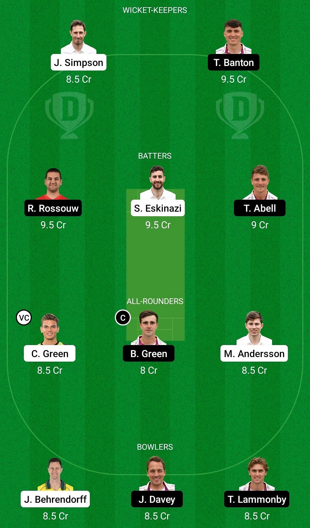 Fantasy Suggestion #1: John Simpson, Rilee Rossouw, Stephen Eskinazi, Will Smeed, Lewis Gregory, Chris Green, Ben Green, Martin Andersson, Peter Siddle, Jason Behrendorff, Josh Davey