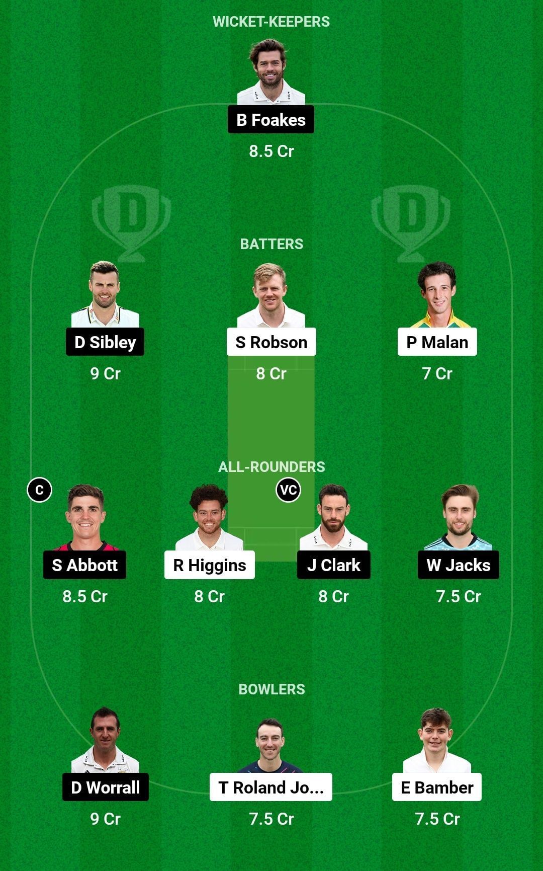 Bowlers: Daniel Worrall (c), Toby Roland-Jones