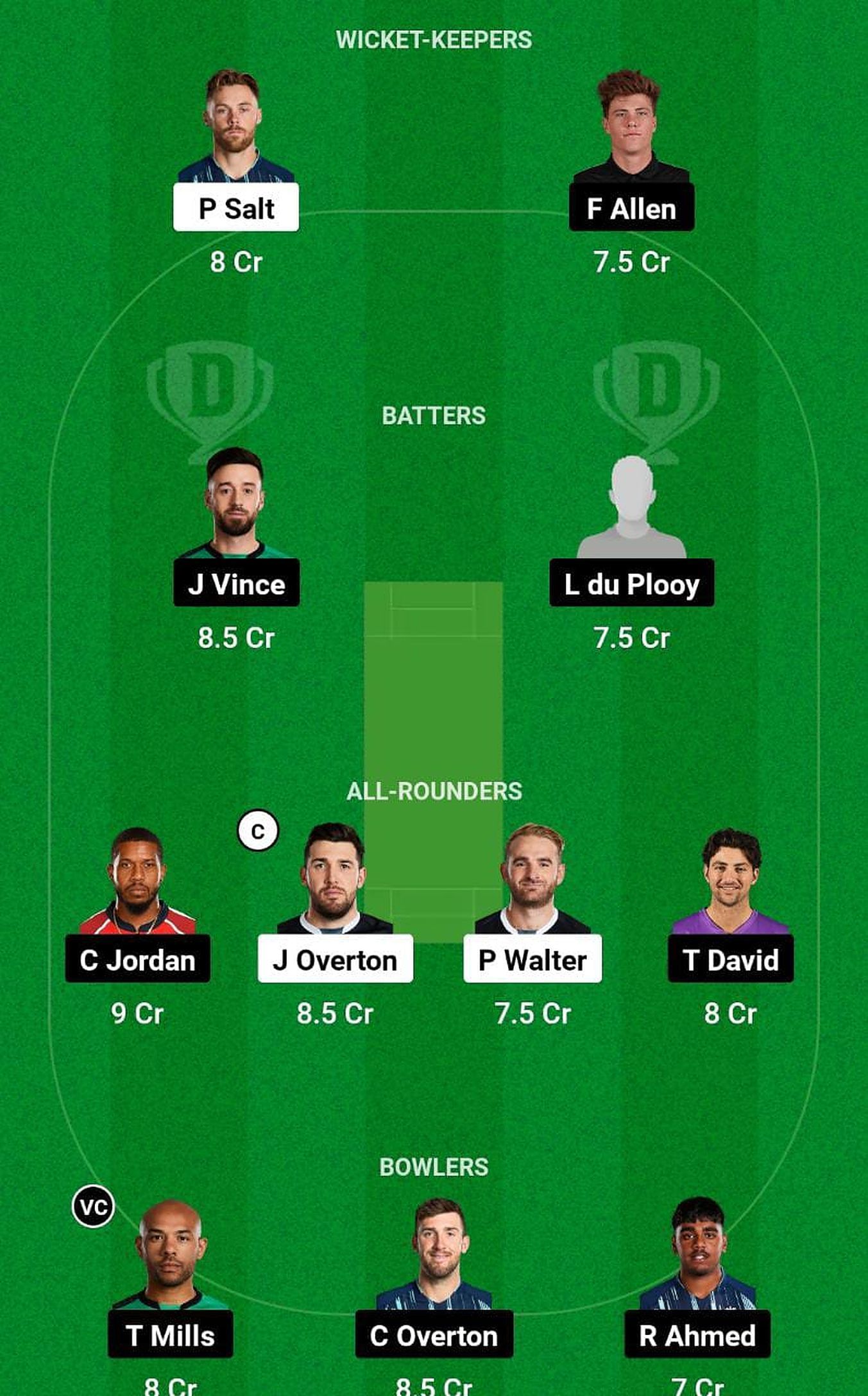 Finn Allen, Devon Conway (wk), James Vince (c), Leus du Plooy, Colin Ackermann, Tim David, George Garton, Chris Jordan, Rehan Ahmed, Craig Overton, Tymal Mills.