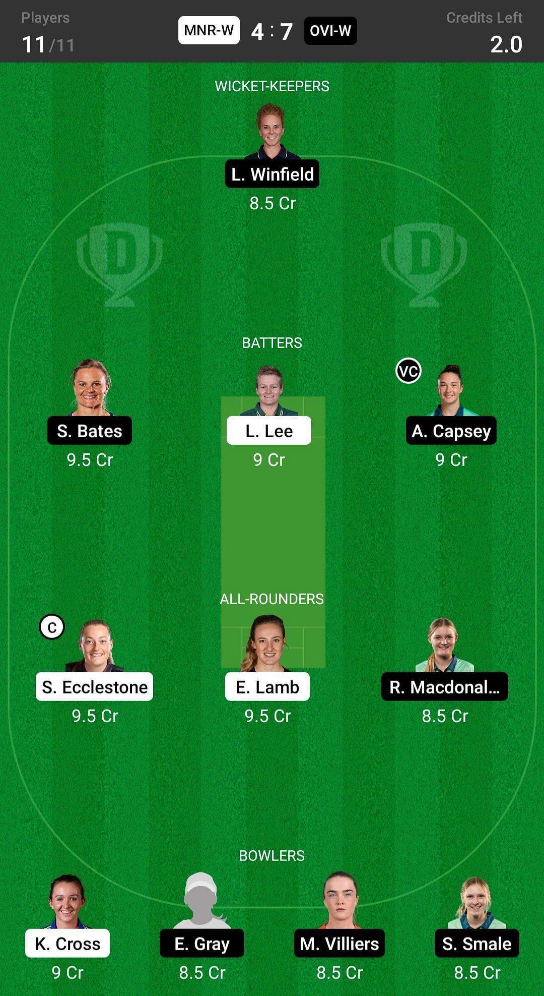 MNR-W vs OVI-W Dream11 Match Top Picks