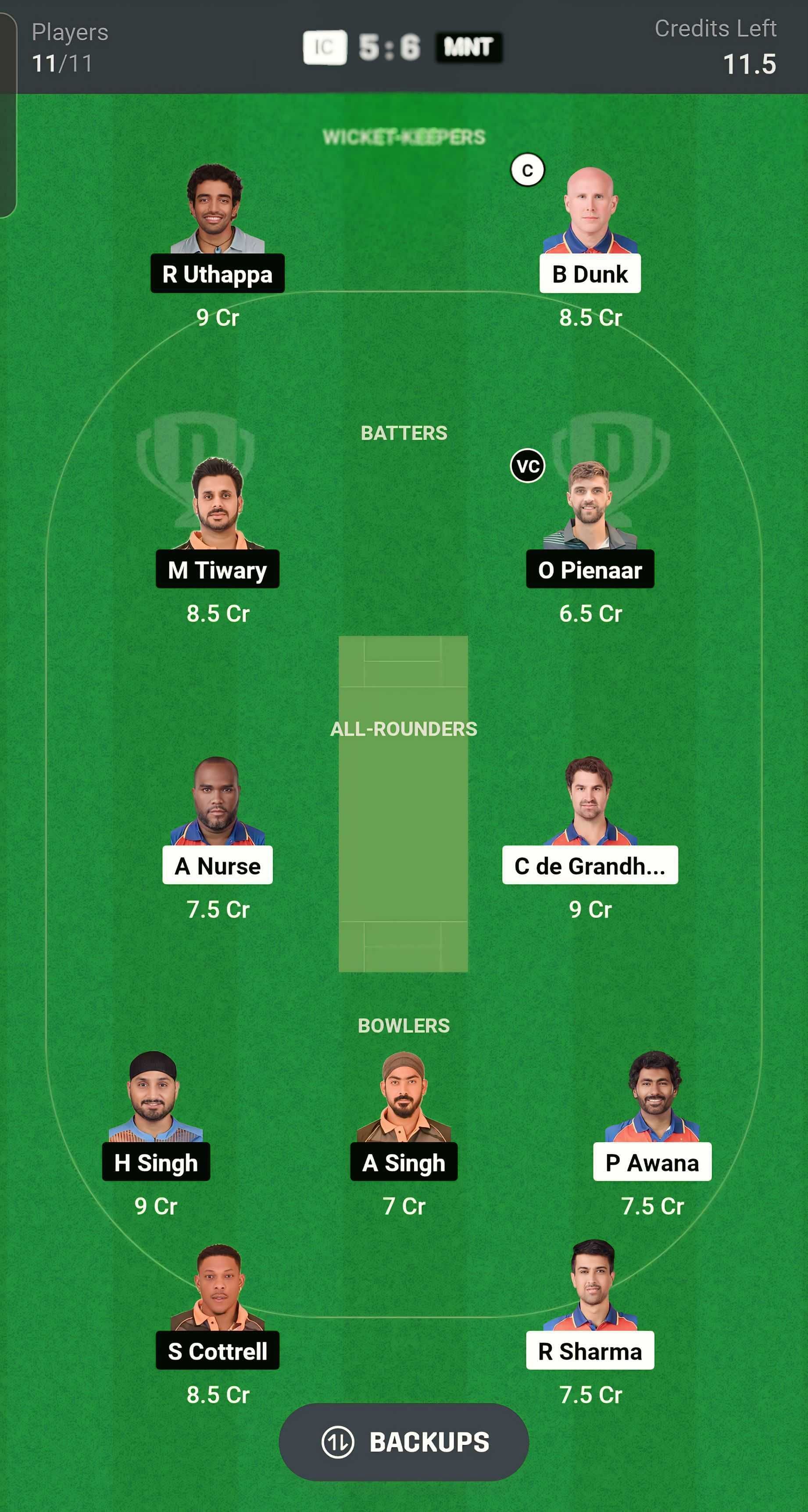 MNT vs IC match captain and vice-captain choices