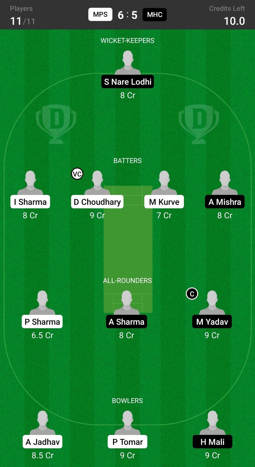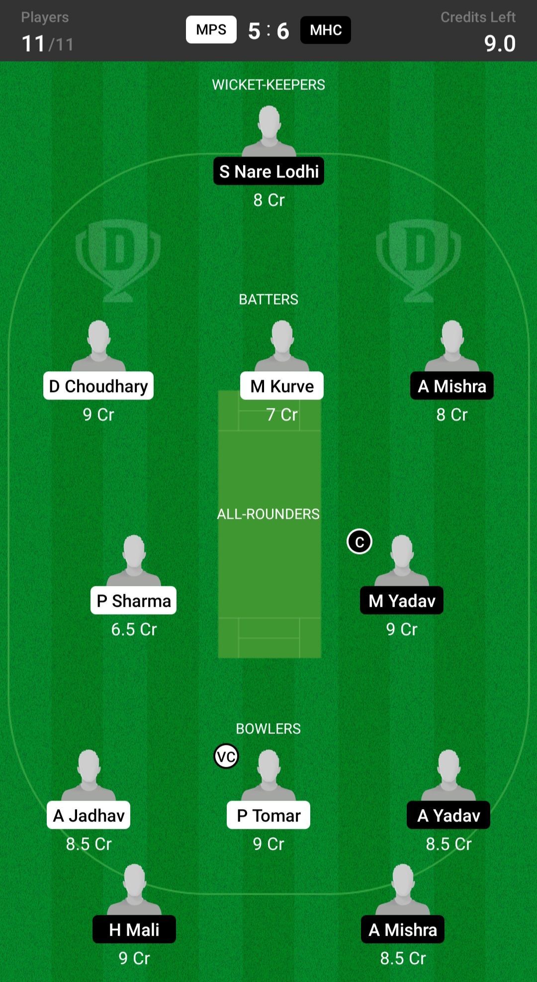 Punit Tomar ©, Dipanshu Choudhary, Ishu Sharma, Puru Sharma, Anchit Thakur (wk), Nadeem Sheikh, Atul Jadhav, Mohit Shinde, Mohnish Kurve, Shreeyog Pawar, Devansh Nandkani