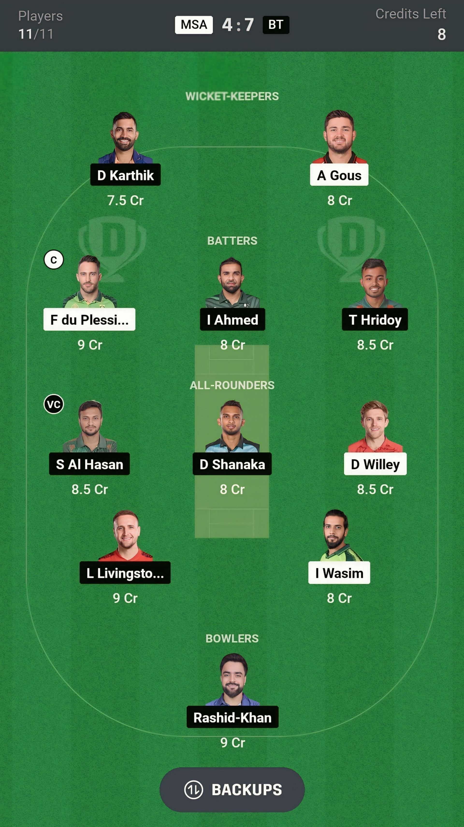 All-rounders: S Al Hasan, L Livingstone, D Willey, D Shanaka, I Wasim
